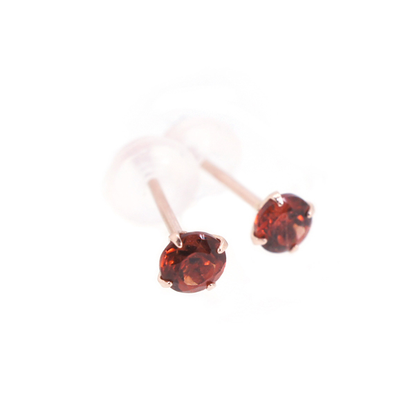 K10ピンクゴールドピアス4本爪3.0㎜ラウンドカット天然石ガーネット