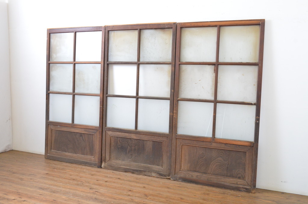 R-063709 アンティーク建具 欅(けやき)材 くっきりとした杢目が目を惹くガラス戸3枚セット(引き戸)(R-063709)