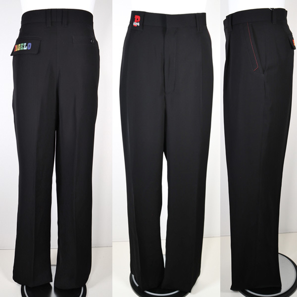 | ■形状/ シワになりにくいポリエステル素材の1タックパンツです。 サラッとした生地感、カラフルなロゴ刺繍がアクセントになっています。 ウエストは1cm程度伸縮するアジャスターのフック付きです。 |
