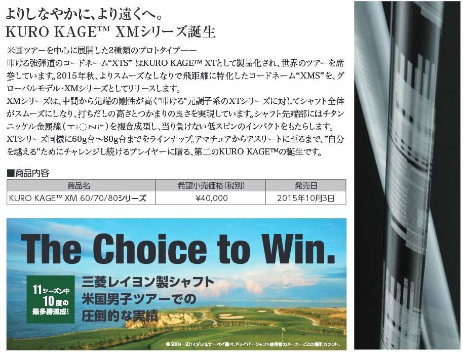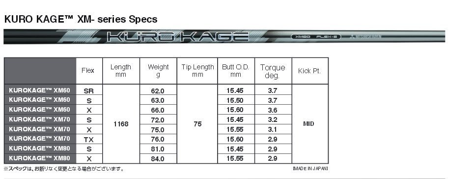 | 商品名 | 新品 三菱レイヨン KUROKAGE XM クロカゲXM XM70 (TX) シャフト単品 日本仕様 | ||||