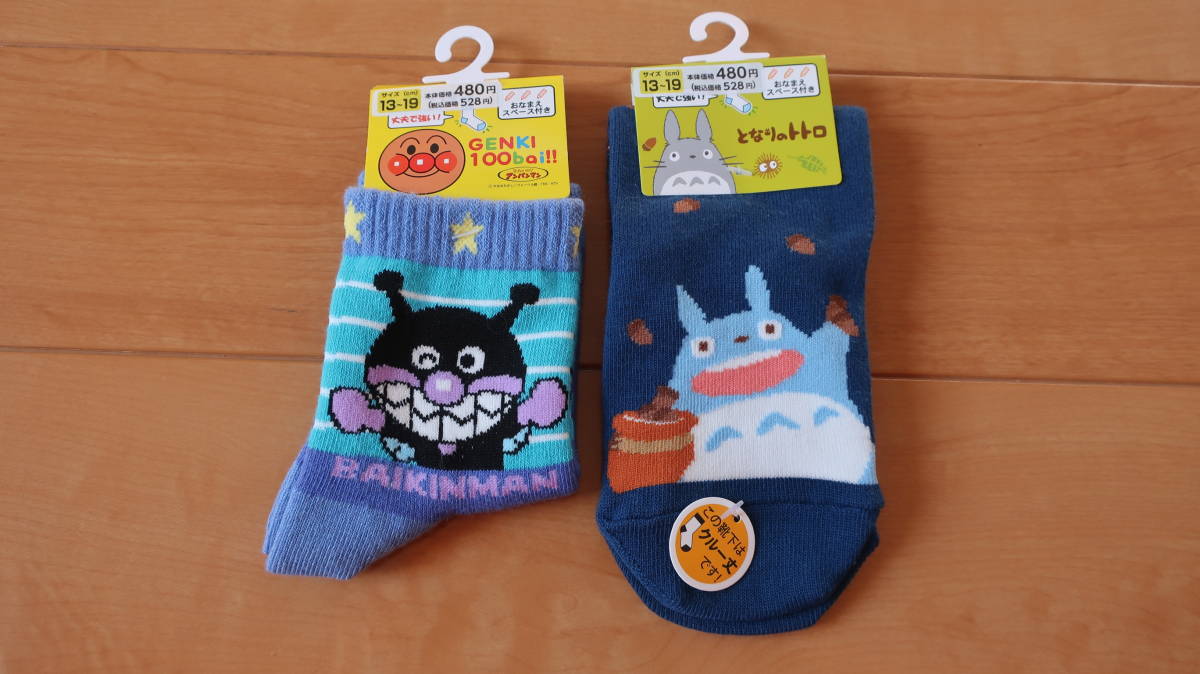 新品タグ付【ばいきんまん・となりのトトロ】子供用 ソックス 靴下 13~19cm 2足セット