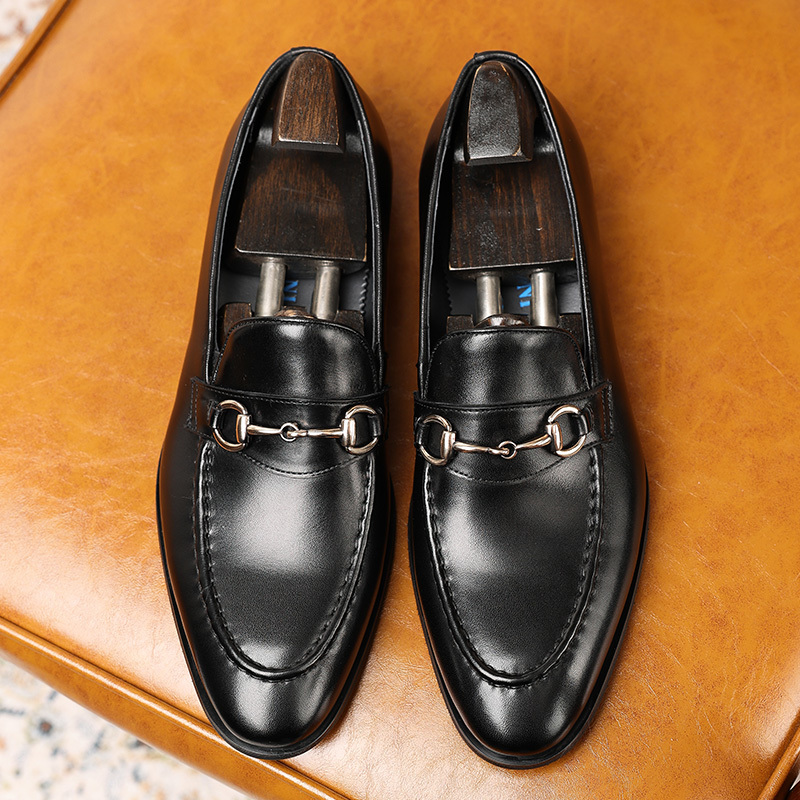 新作/新品/メンズ ビジネスシューズ紳士靴 本革 ビット ローファー スリッポン ブラック SE24.5cm