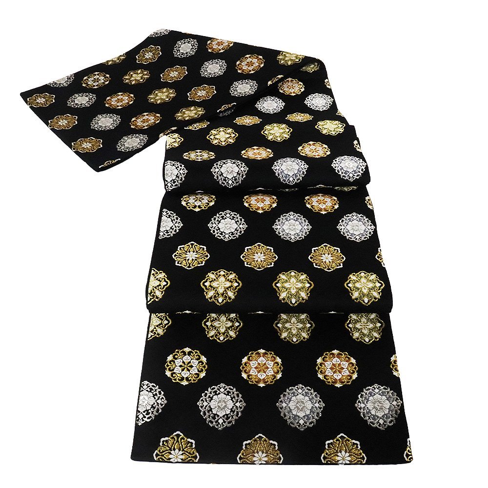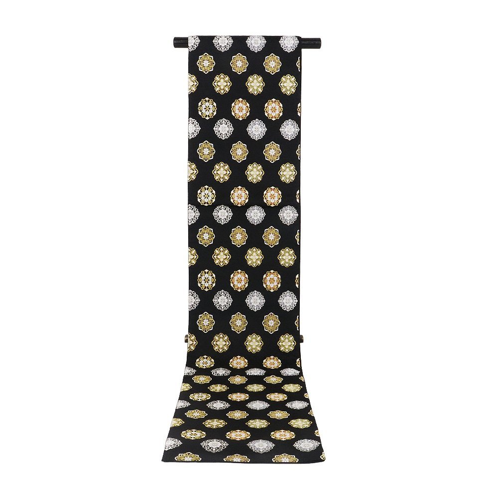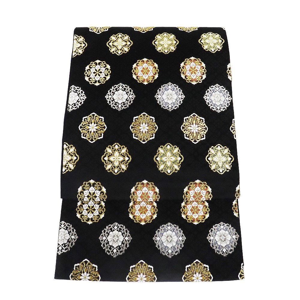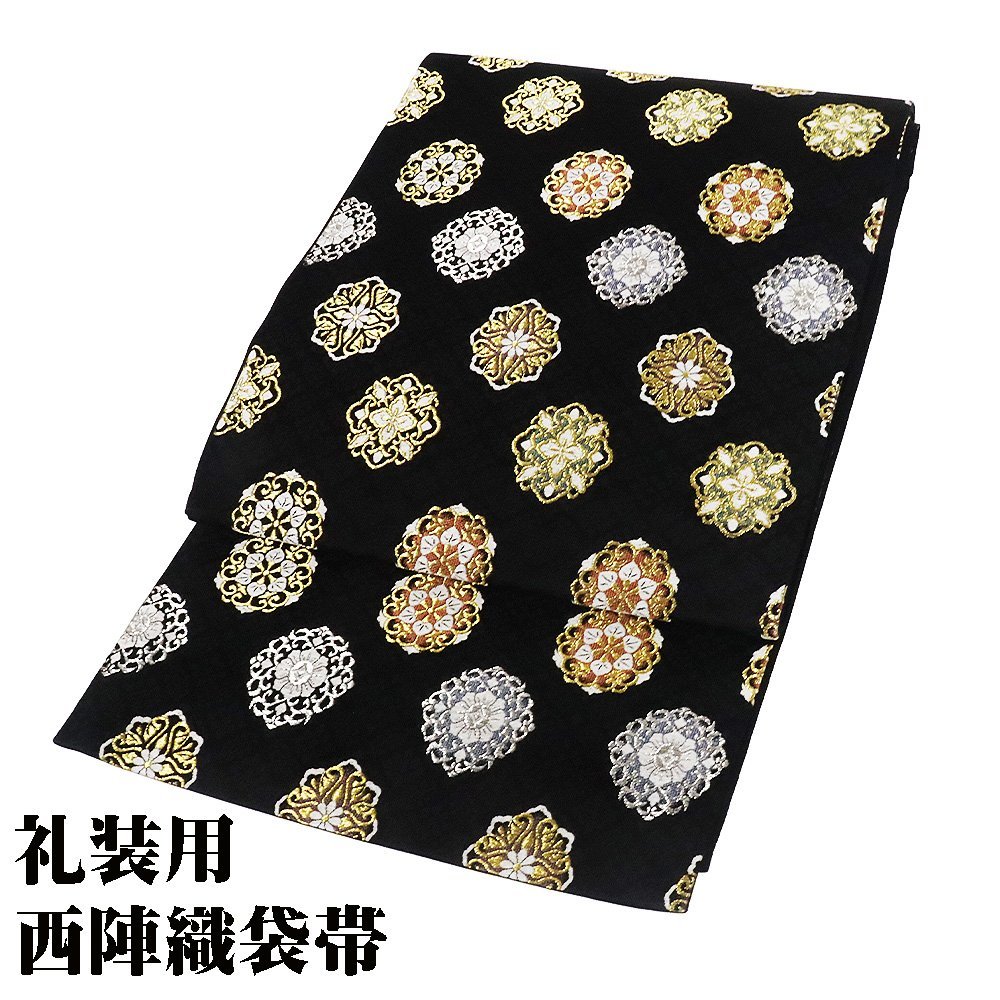 | 西陣織袋帯 比照華文 黒・花菱地模様地 金糸・銀糸・縫い取り・華文 新品 仕立て上がり |
