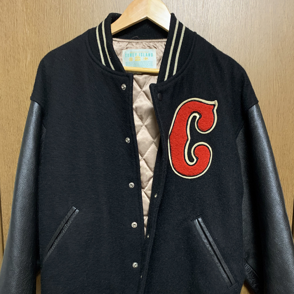 F CONEY ISLAND / コニー・アイランド ブラック 袖牛革 スタジャン 日本製