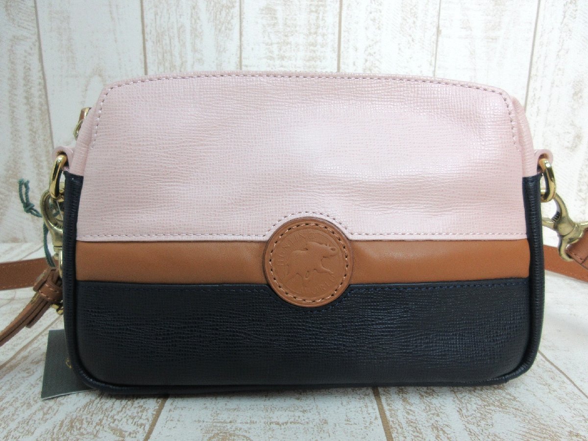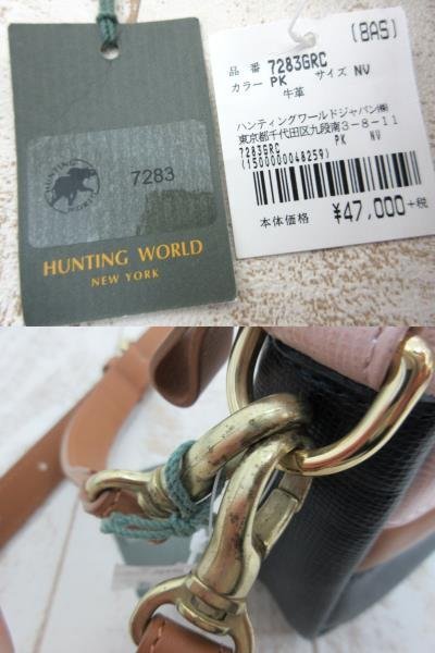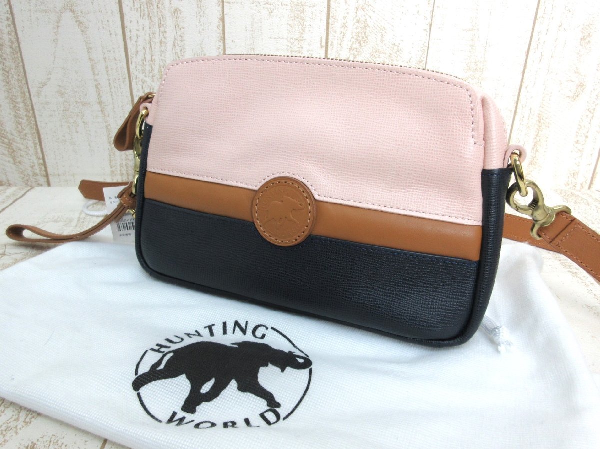 HUNTING WORLD/ハンティングワールド:レザーショルダーバッグ 3WAY クラッチバッグ セカンドバッグ 牛革 未使用
