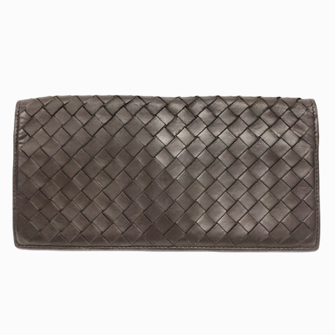 ボッテガヴェネタ BOTTEGA VENETA イントレチャート 長財布 二つ折り ナッパ 茶 ダークブラウン レディース