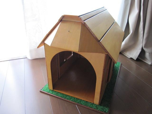 新品のハンドメイド室内小型犬用の犬小屋です。 細かい細工で作って頂いております。 お部屋に置いても素敵なデザインなので 違和感なく置けます。 猫ちゃんの小屋としても良いと思います。 屋根と窓が開閉します。 小屋下に敷いてある人工芝は、小屋の横にセットすればお庭に 早変わり。 庇にネームプレートが付いております。 屋根は取り外せてお掃除も楽チンです。 ● 材 質:シナベニア (ウレタンニス クリアー仕上げ) ● サイズ:幅320mmx奥行440mmx高さ354mm 購入しましたが、うちの子は一切見向きもせず・・ サイズアウトになってしまいました。 1点物ですのでお早めに… | |||