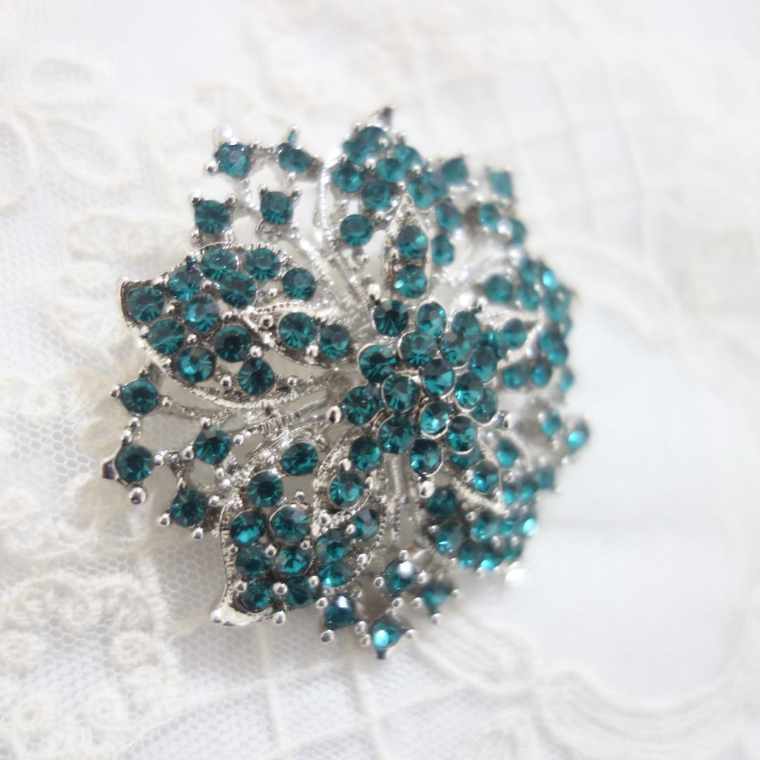 ヴィンテージ調 グリーン輝石 繊細 結晶 デコ 雰囲気のある ブローチ