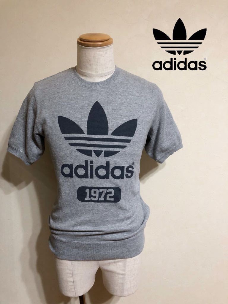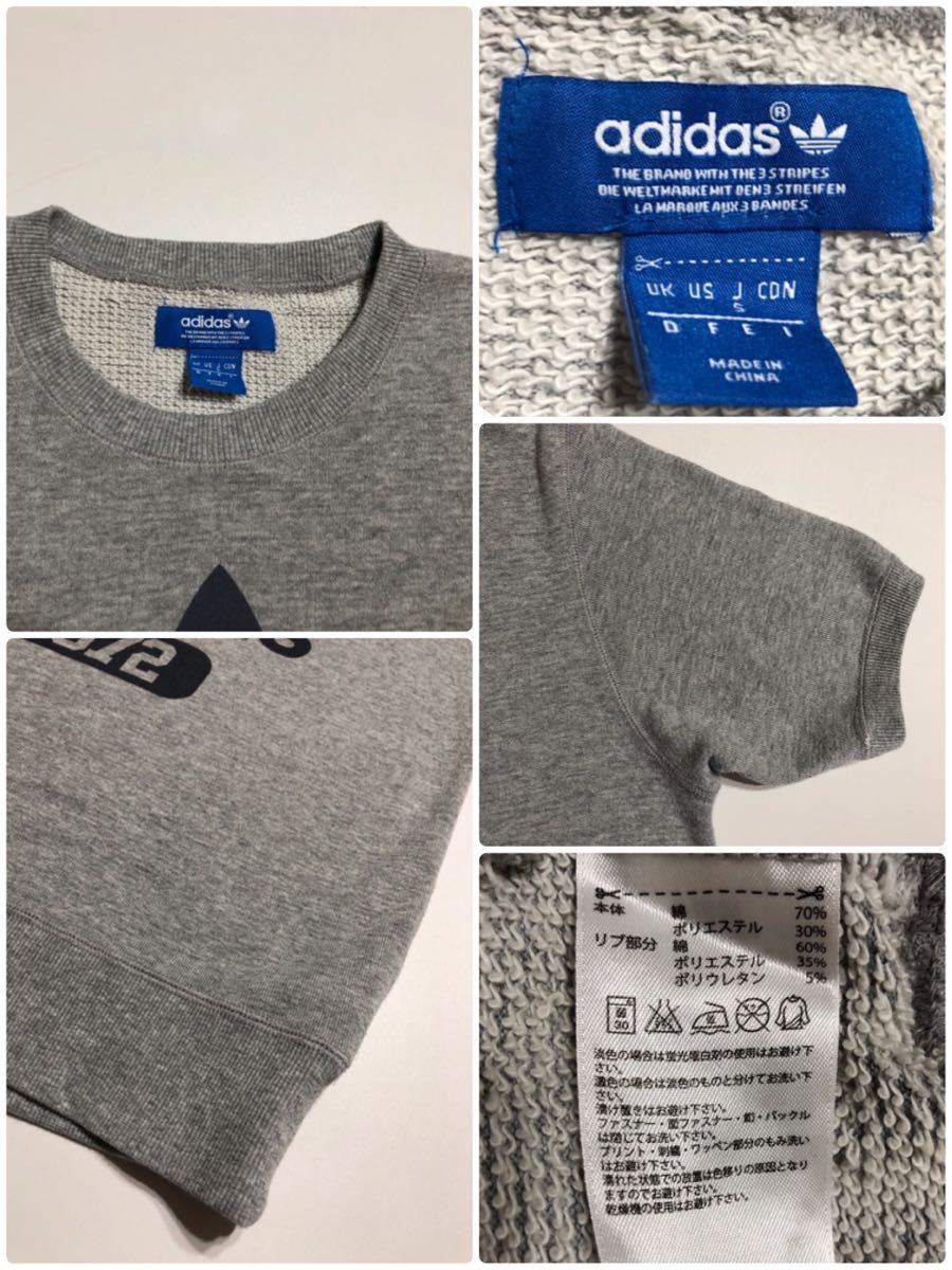 adidas originals アディダス オリジナルス トレフォイル ビッグロゴ スウェット クルーネック Tシャツ トレーナー サイズS 半袖 グレー