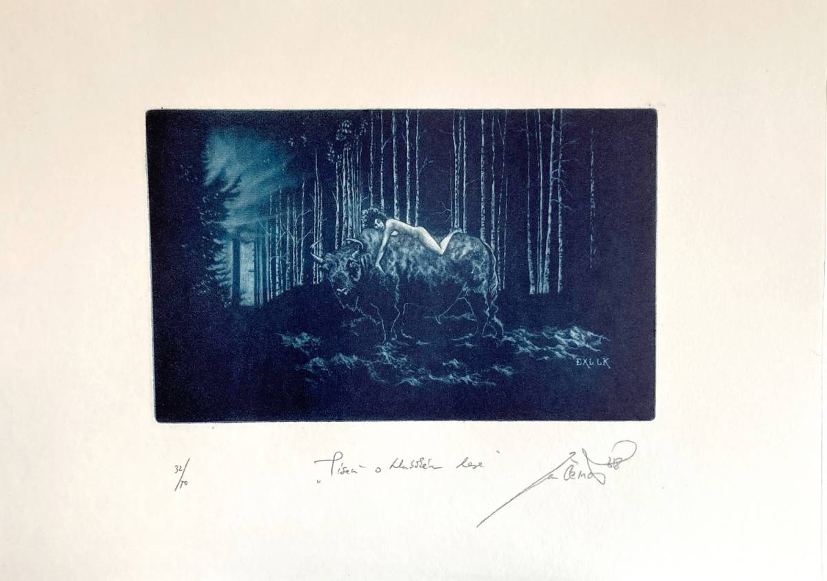 ■タイトル: 『Pisen o hlubokem lese  深い森の歌』 西洋蔵書票 (Exlibris)(本作品の説明付)