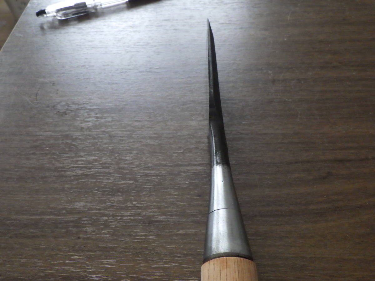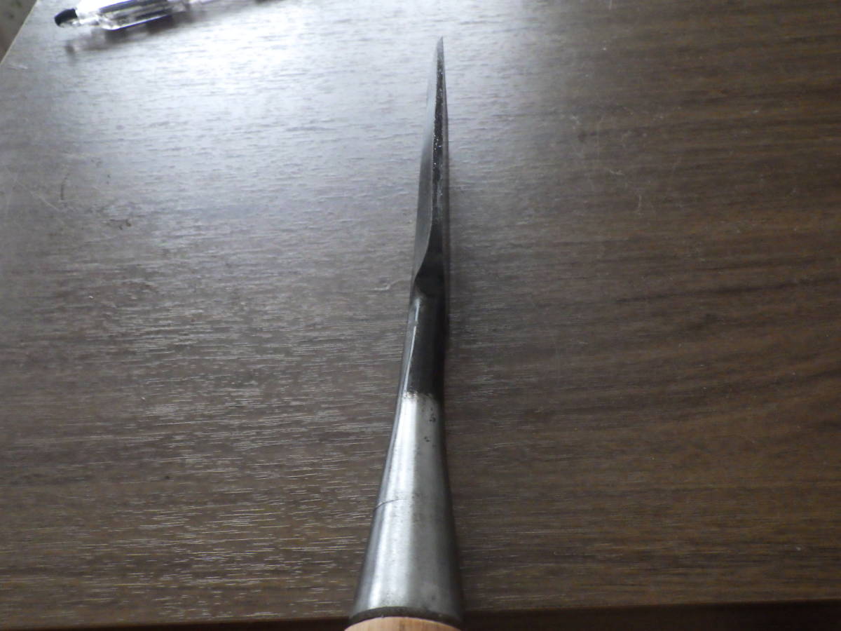 サイズは全長30.5㎝、穂長9.4cm、刃幅3.6cm、刃厚み鎬筋5㎜根元8㎜です。