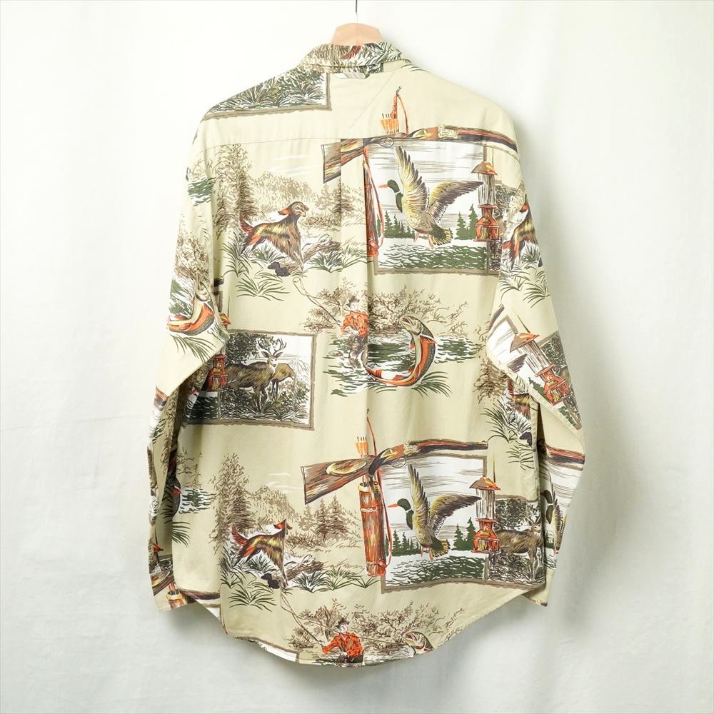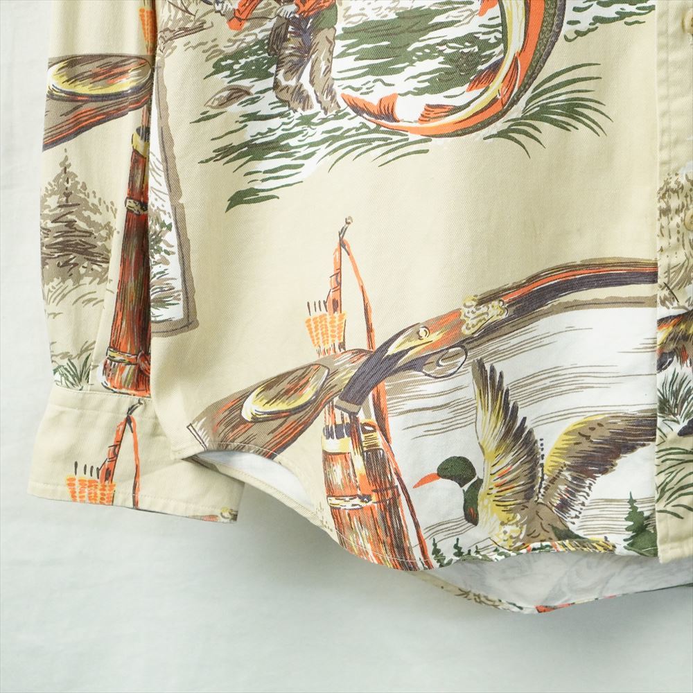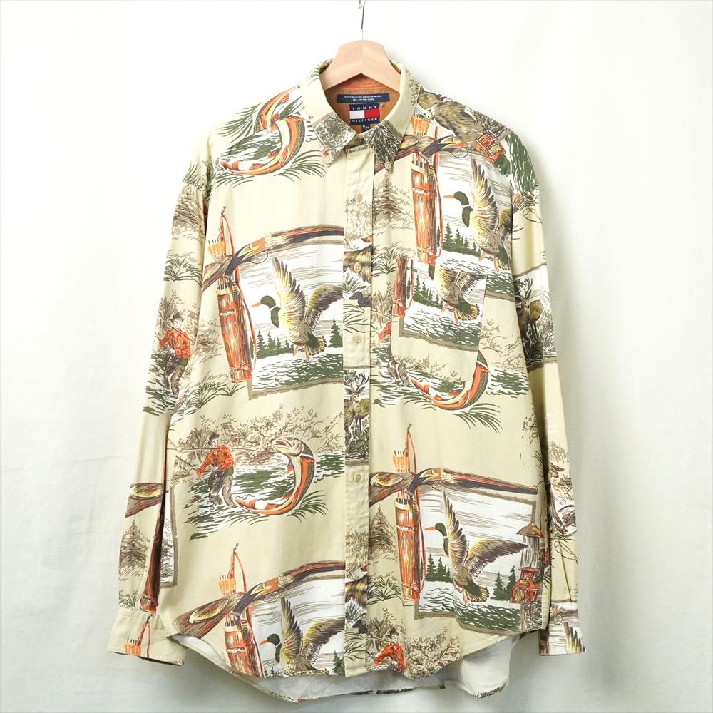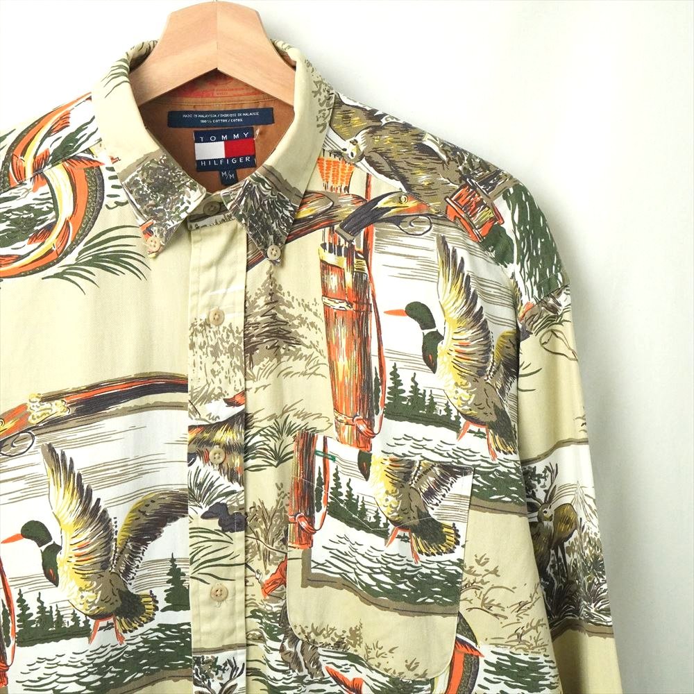 90s ビンテージ TOMMY HILFIGER トミーヒルフィガー フィッシング 総柄 シャツ M