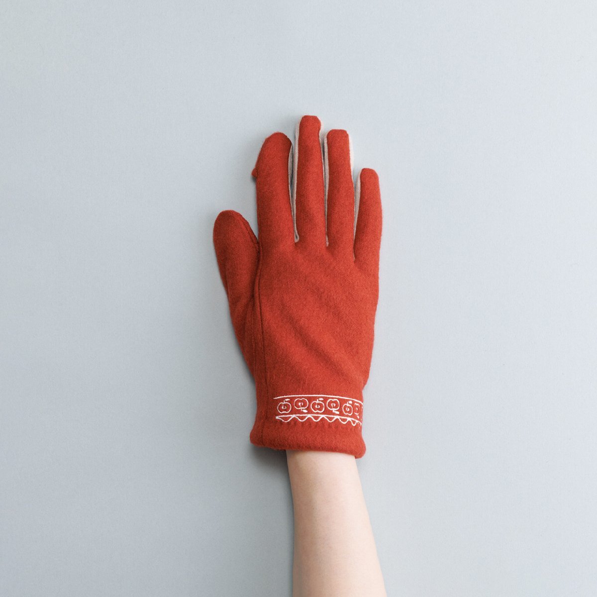 商品説明 | ・・リンゴ柄のレースをイメージした刺繍のジャージグローブ。 ・甲側・掌側は同色、指と指の間(マチ)はベージュの生地で少し遊び心のあるジャージグローブ。 ・掌にも、こっそり食べかけのリンゴ刺繍を施してある。 ・裏地は、やわらかくあたたかなマイクロボアを使用。 ・「親指・人差し指」にはスリットが入っている為、指先を出し入れ可能。手袋を着用したままタッチパネル操作も楽々。 |