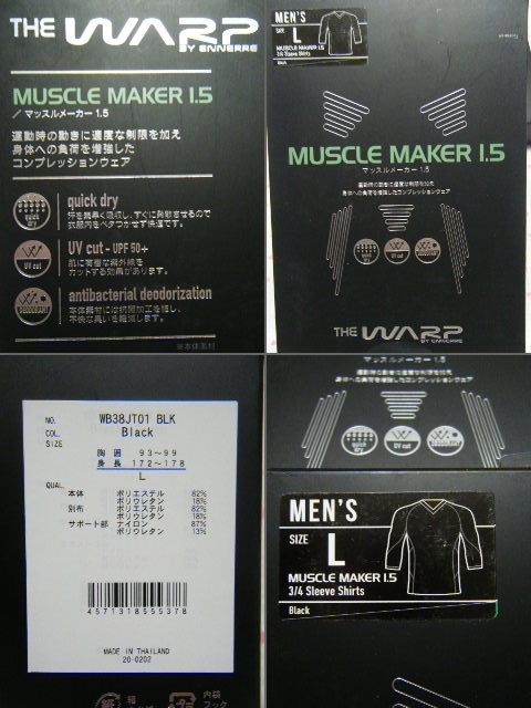 エネーレ The Warp By Ennerre MUSCLE MAKER 1.5 ゴルフ用高機能高性能コンプレションシャツ 黒色 サイズ L 吸水速乾/抗菌/UV機能