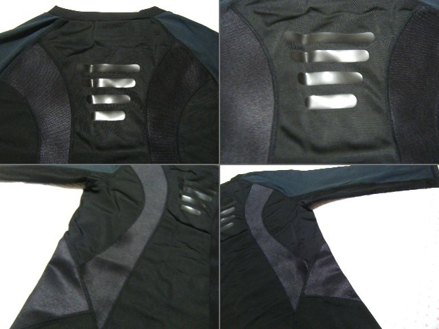 ▼ ヒートトランスファー ・・・ 引き締め効果のある伸びずらいシート「ヒートトランスファー」を肩甲骨や大胸筋部分に配置しており、関節の動きを適度に制限することで、関節を動かす際の運動負荷を高めます。
