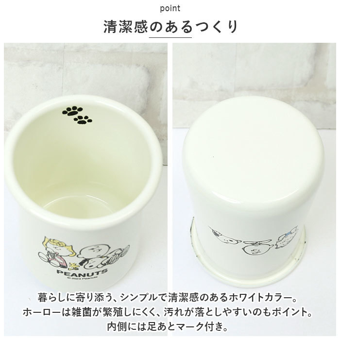 商品説明 | ・・癒やされる可愛さ☆PEANUTSデザインの「ホーローカトラリースタンド」が新登場。 ・【日本製の琺瑯容器】 ・新潟県燕市で1つ1つ丁寧に仕上げた、カトラリースタンド。キッチンに馴染むナチュラルな仕上がり。(※下地は中国国内、絵付け、仕上げまでの完成工程を日本国内で行っております。) ・【カトラリー類をまとめてスッキリ】 ・家族分のスプーンやフォーク、お箸などを立てて収納♪テーブルやキッチンに出して置いておけば、テーブルコーディネートの準備もスムーズ。 ・【清潔感のあるつくり】 ・暮らしに寄り添う、シンプルで清潔感のあるホワイトカラー。ホーローは雑菌が繁殖しにくく、汚れが落としやすいのもポイント。 ・【ほっこりキュートなデザイン】 ・PEANUTSキャラクターたちの愛らしい表情が魅力☆お気に入りのアイテムを使ええば、毎日のお料理もより楽しくなりそう♪内側には足あとマーク付き。 |