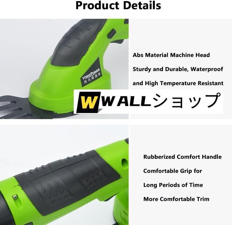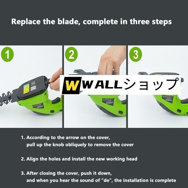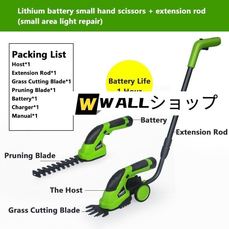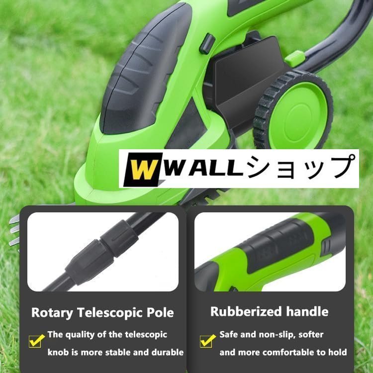 伸縮ロッド付き電動芝刈り機(65-100cm)、リチウム電動芝刈り機、刃2組草刈刃+剪定ナイフ