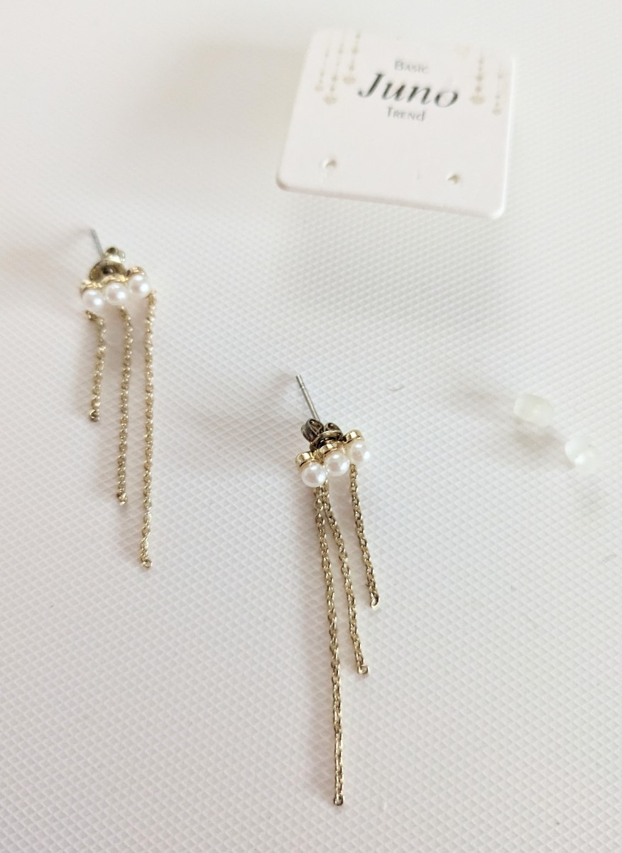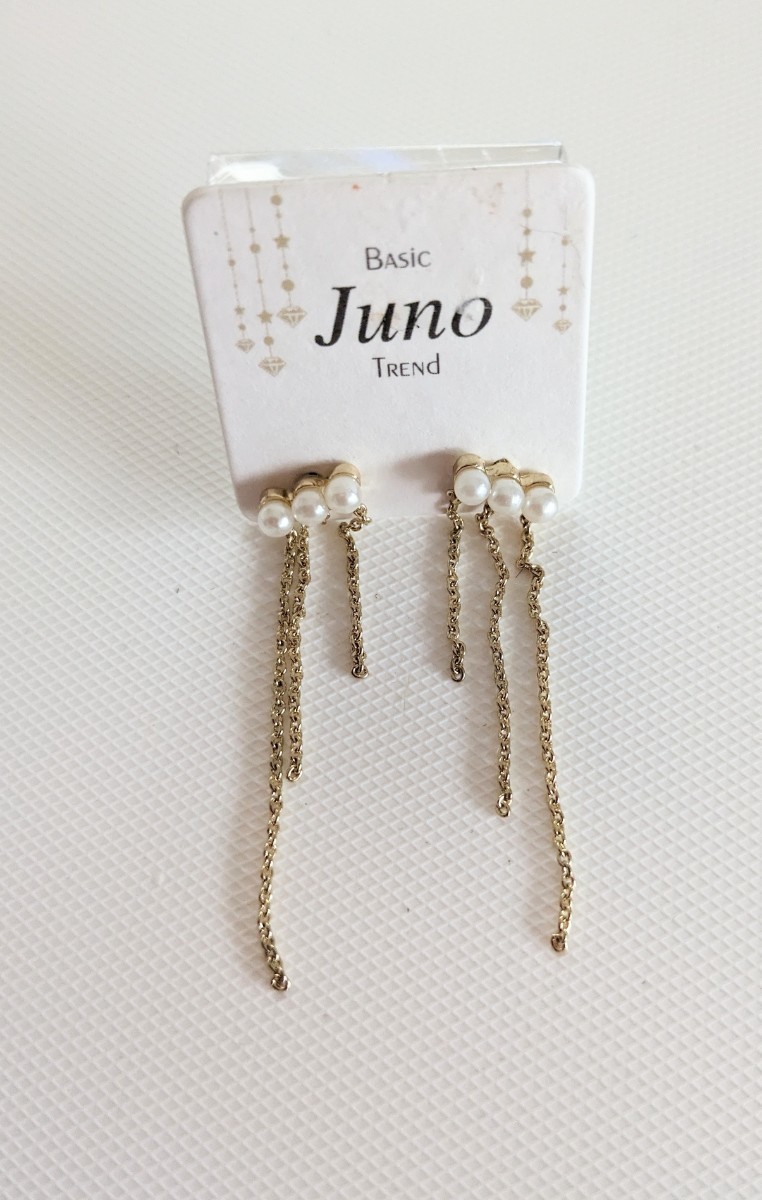 こちらは、新品未使用 Juno パールビーズ ゴールドカラーチェーン スタッドピアス になります♪