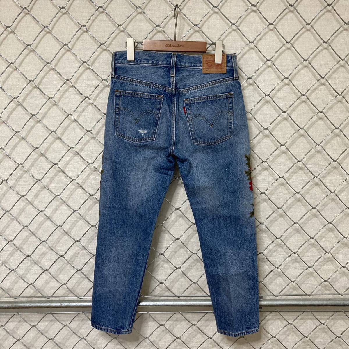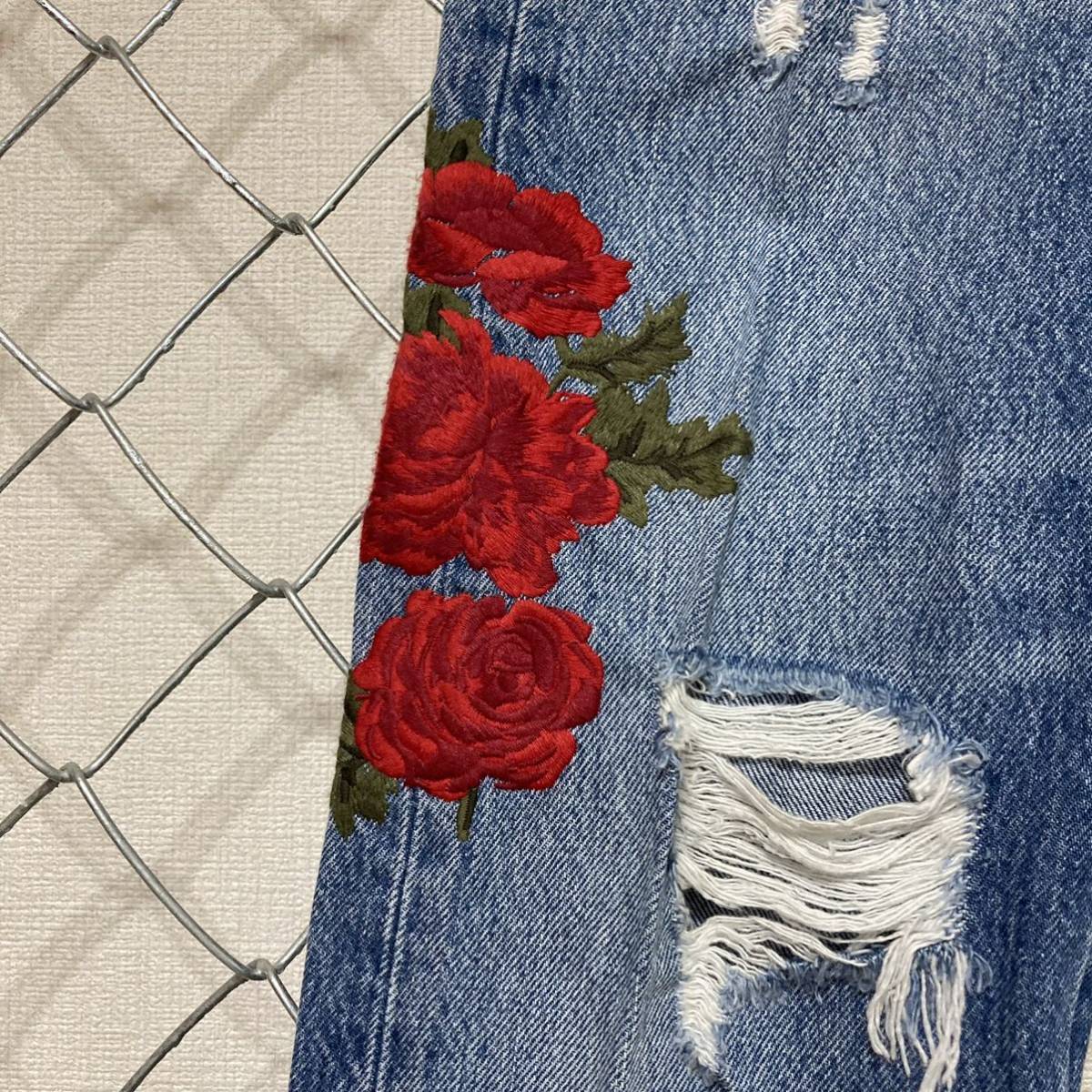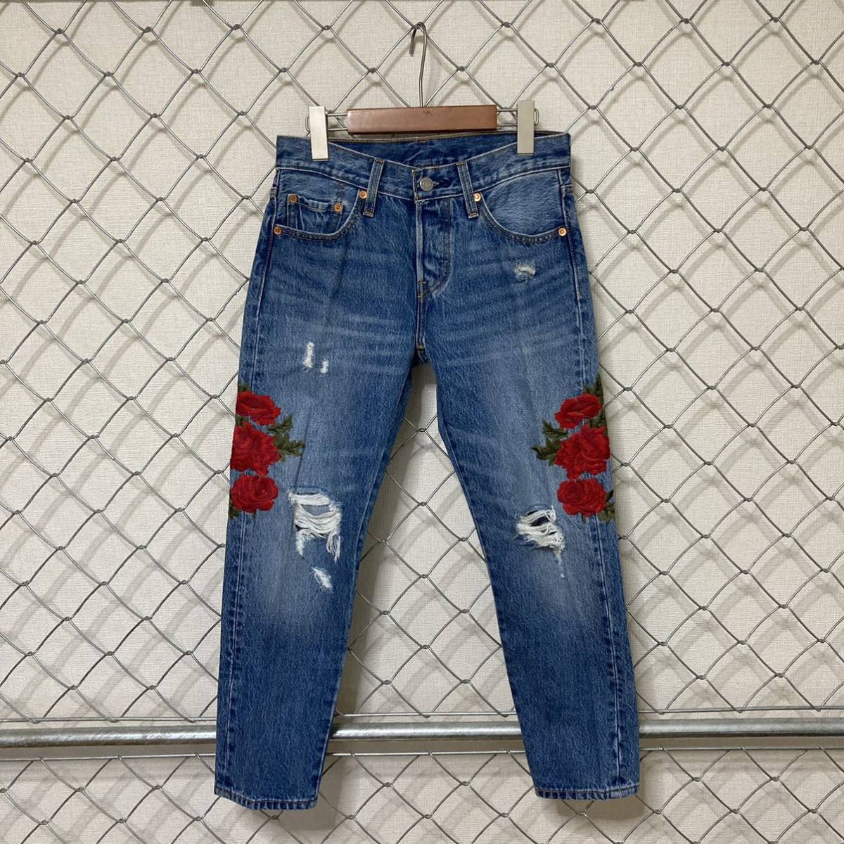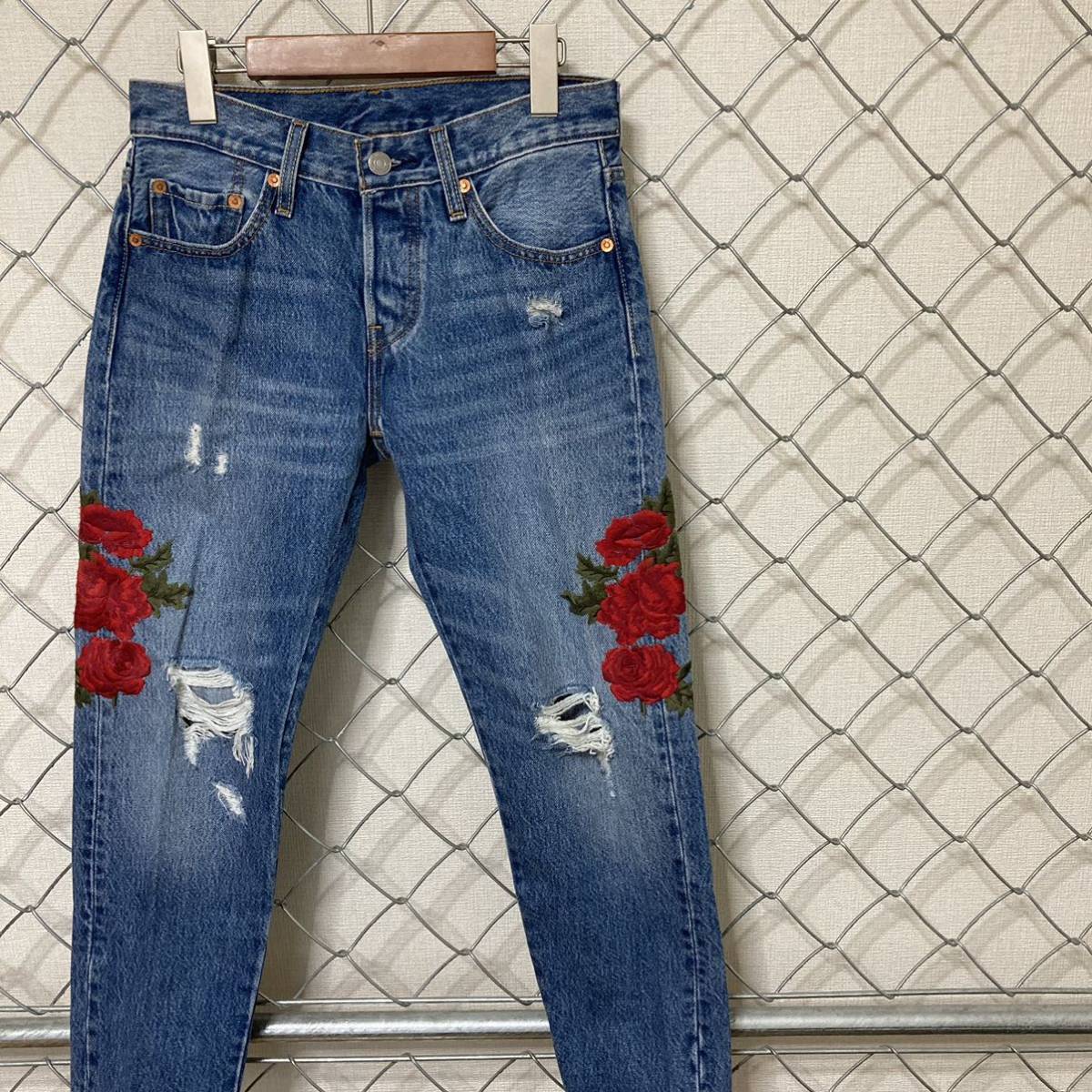 Levi's 501CT リーバイス 薔薇 豪華刺繍 ダメージ加工 デニムパンツ ジーンズ レディース 24×26
