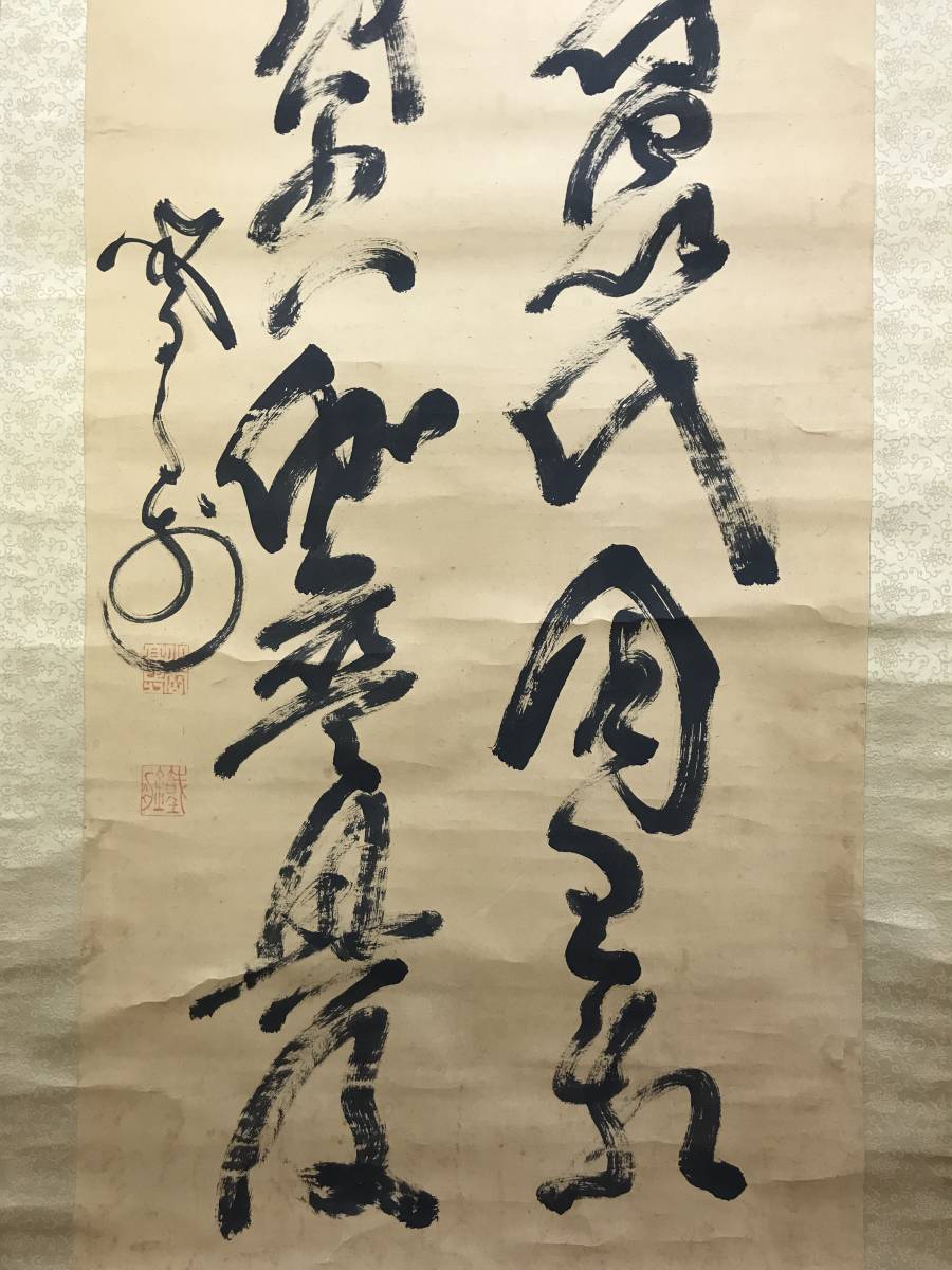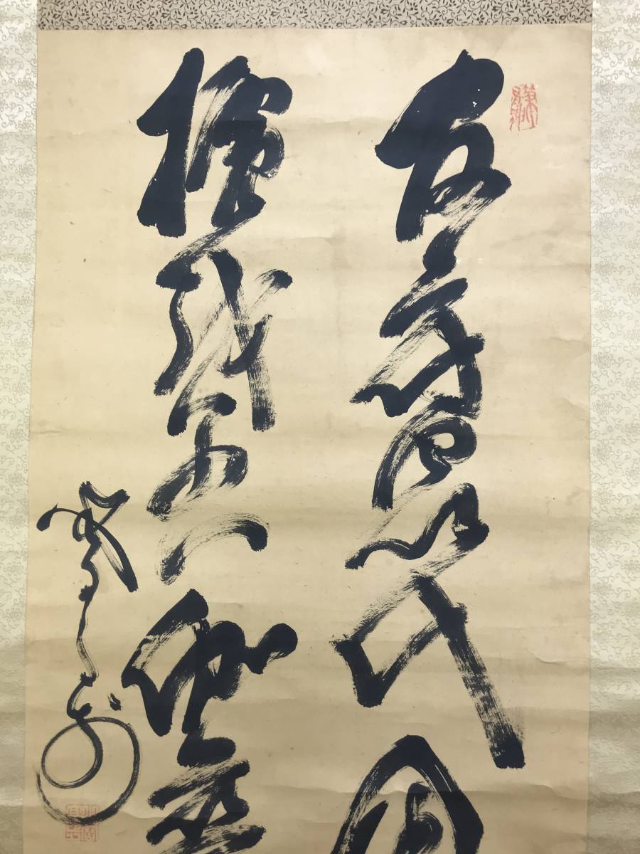 【作品状態】 本紙は紙本肉筆です。 本紙は多少の時代感あり全体に汚れシミ、巻シワあります。表装は概ね良好です。