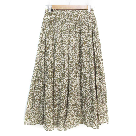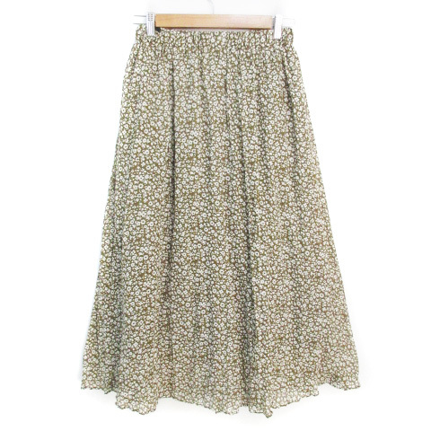 ロユタ Loytaa フレアスカート ロング丈 マキシ丈 花柄 F カーキ 白 ホワイト /FF51 レディース