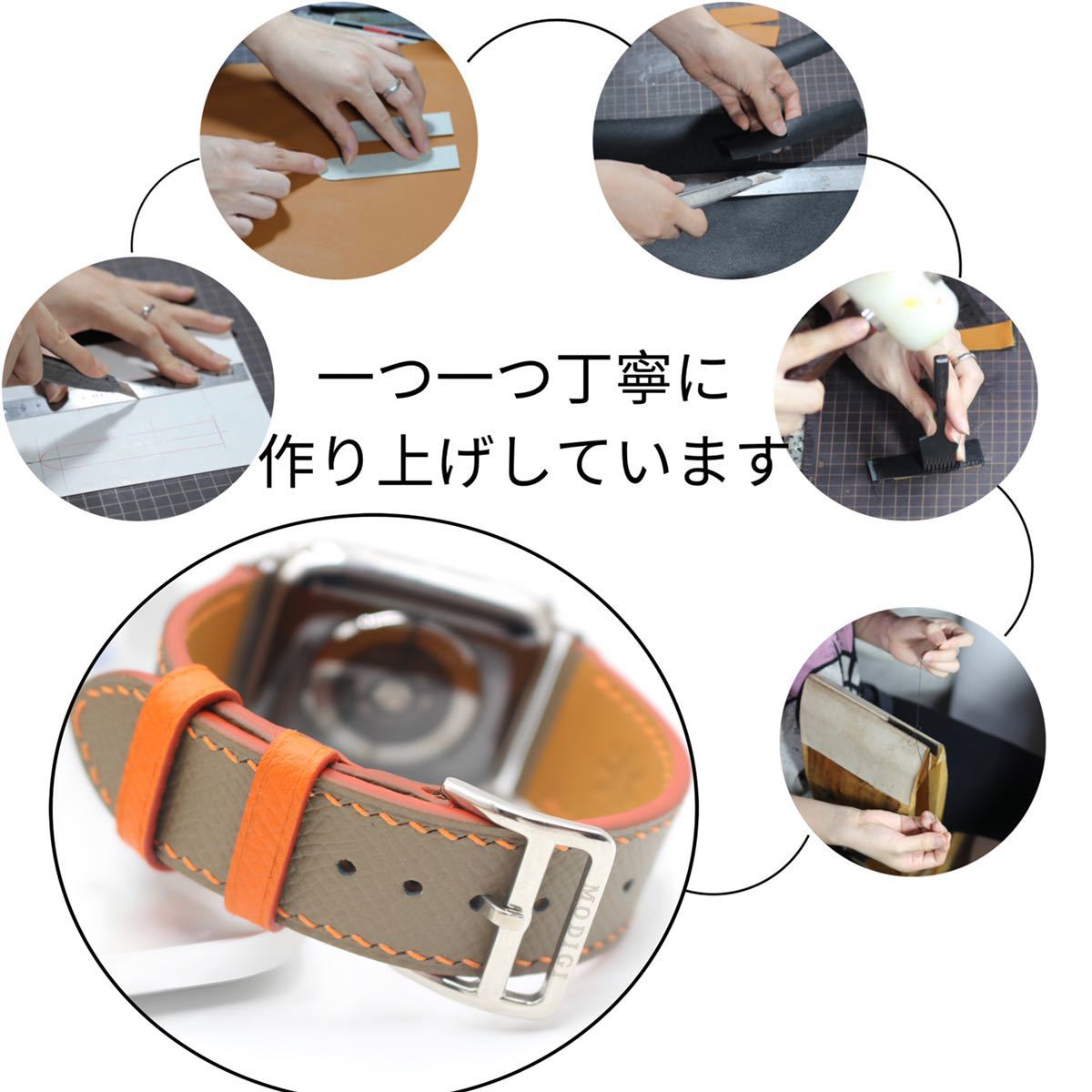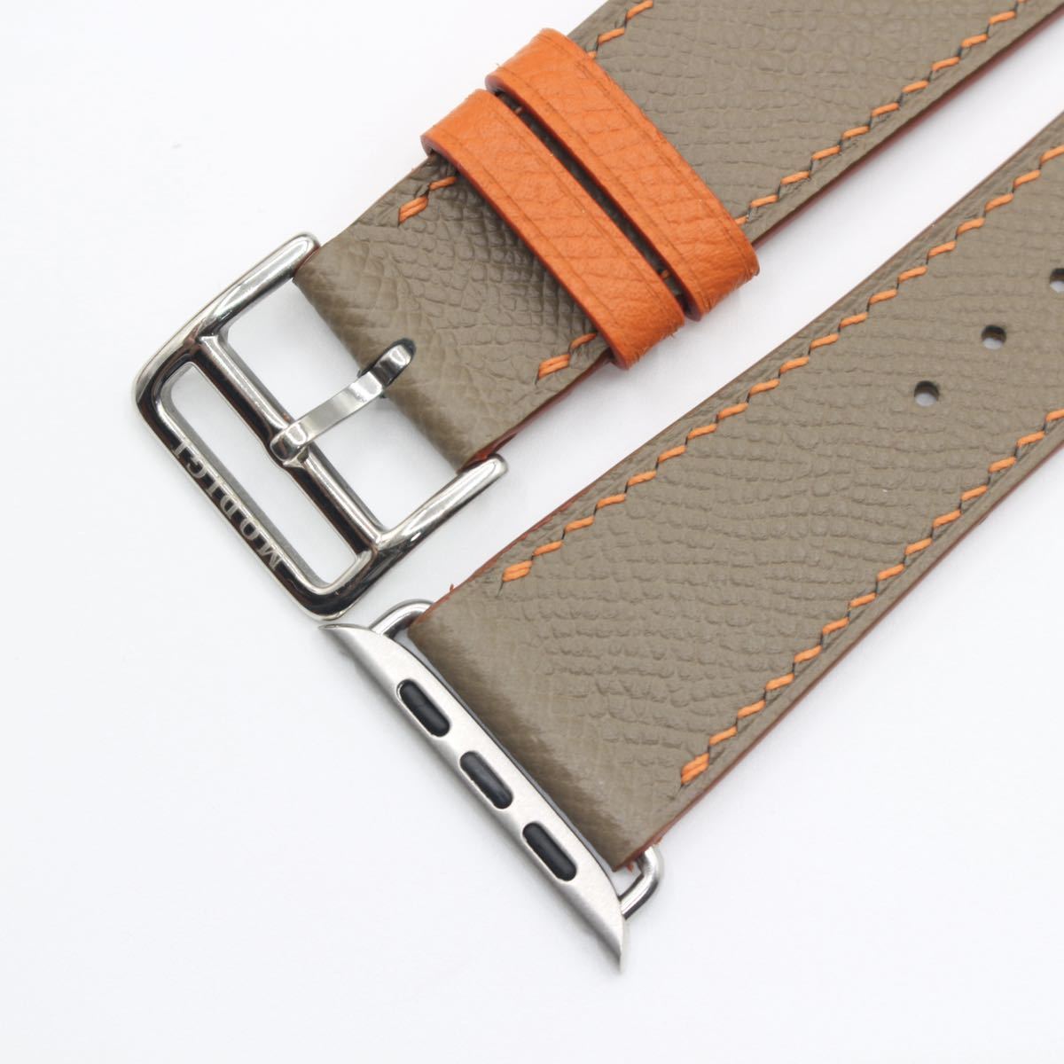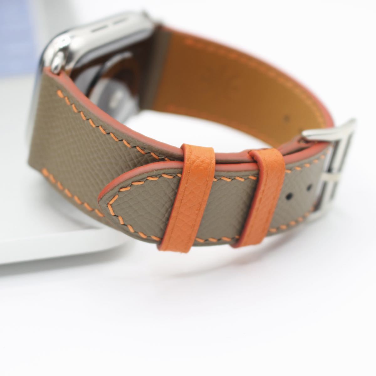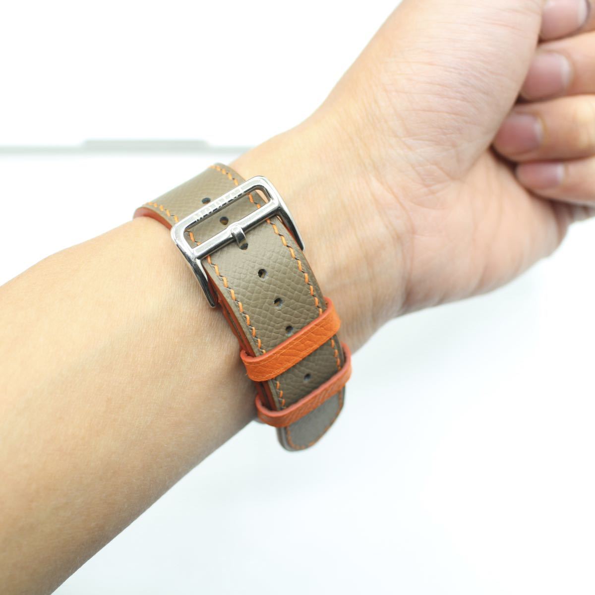 この時計ベルトはエプソン革を使用されています。上質で上品な色味のこちらのベルトはビジネスシーンから日常使いまで様々な機会や多くの異なる時計のスタイルに使用することができます。有名なHaas Tanneryのエプソンレザーを使用し、カットやステッチなど全て手作りです。