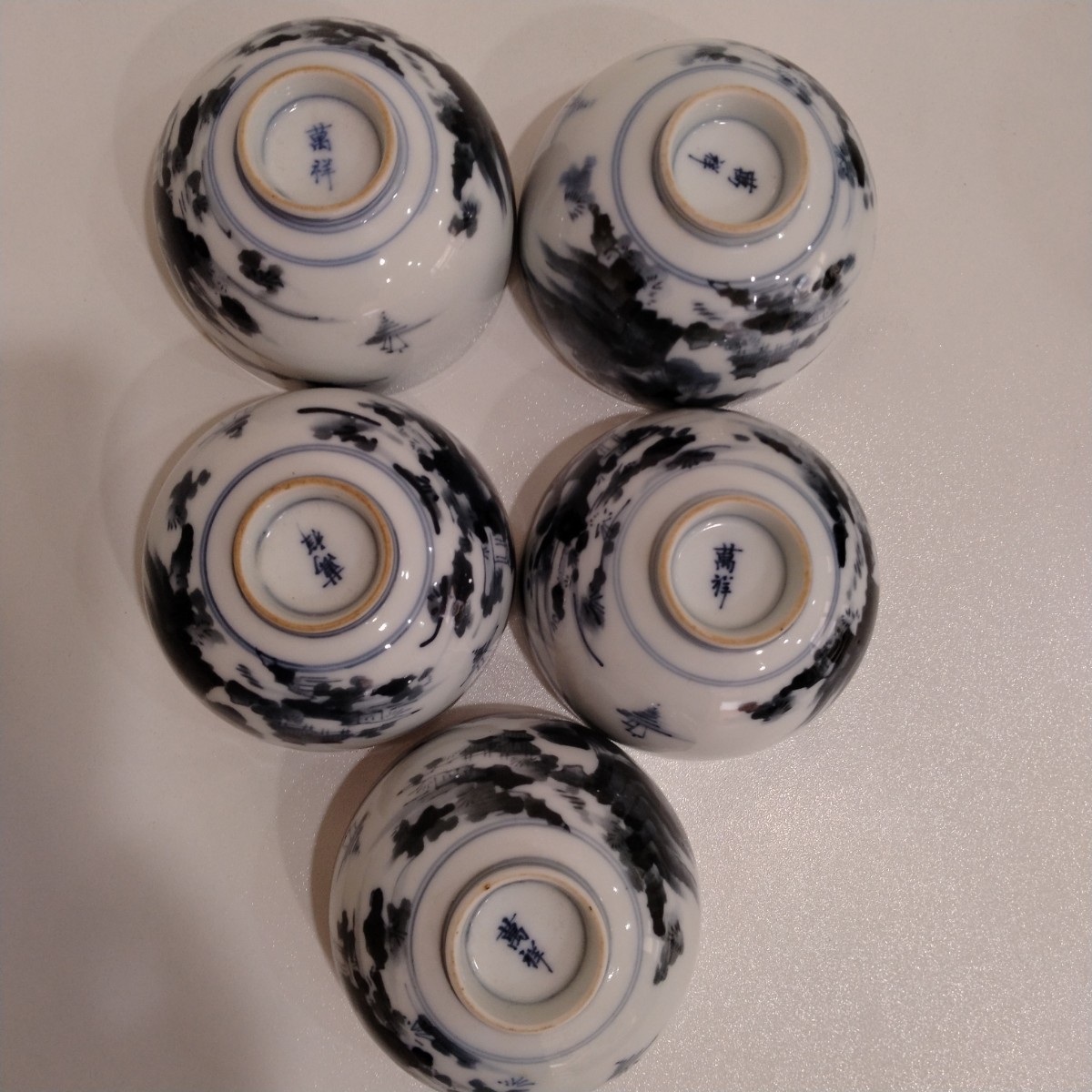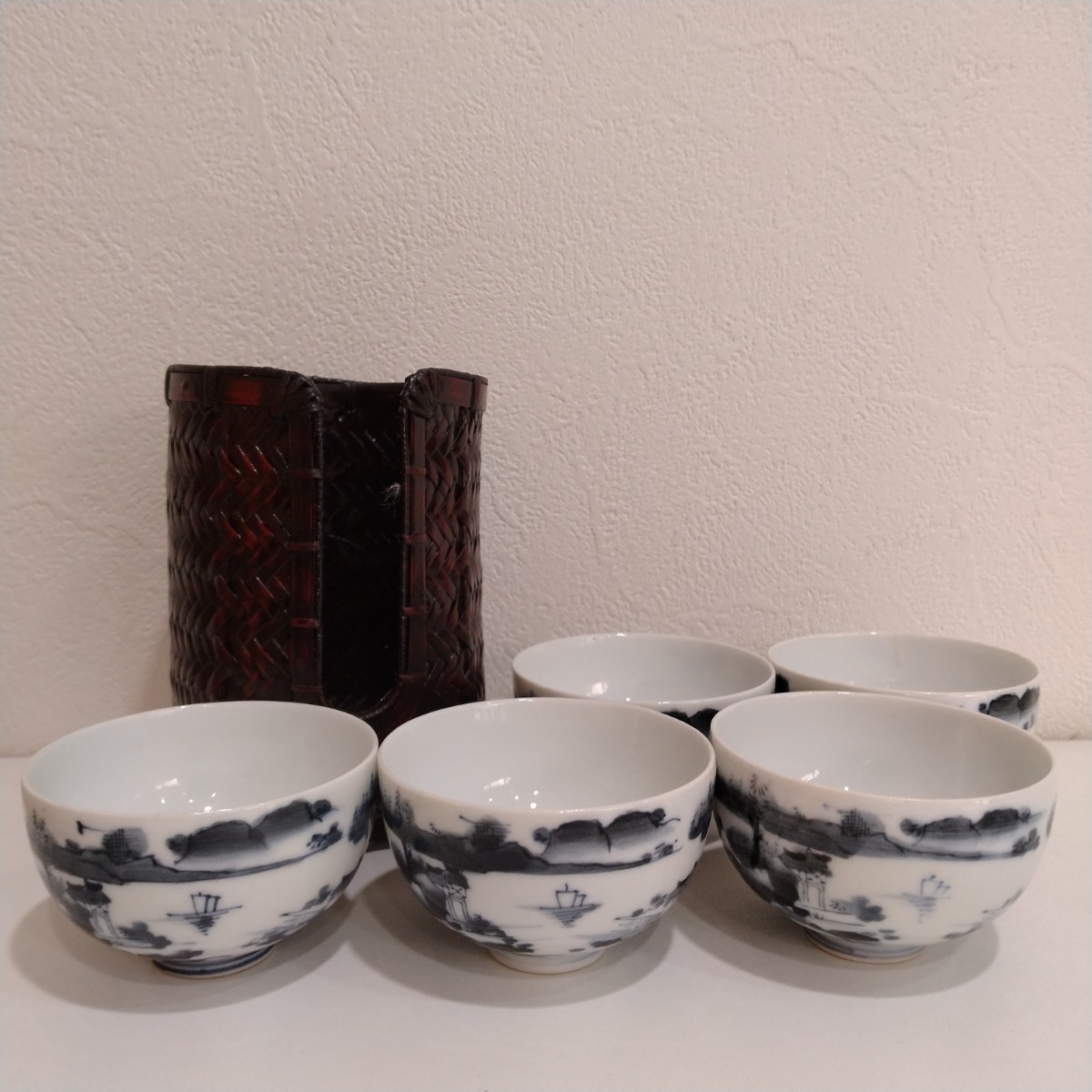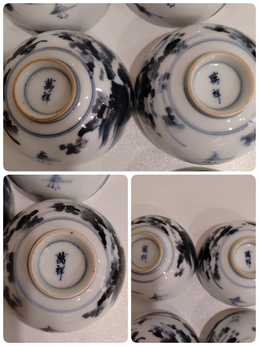 商品名 | 萬祥銘 染付 山水風景文 茶碗 5点 煎茶碗 茶器 茶道具 碗籠付き |