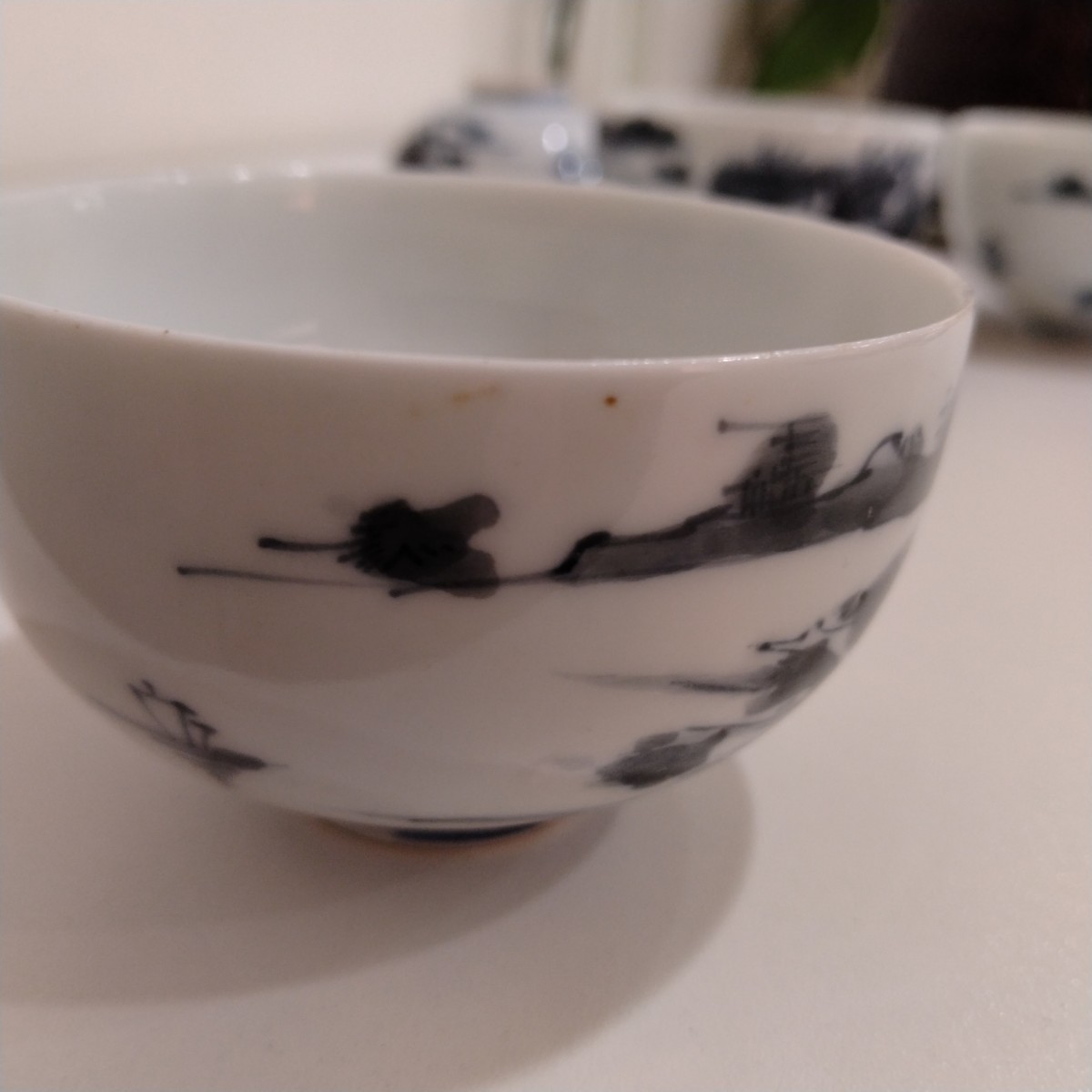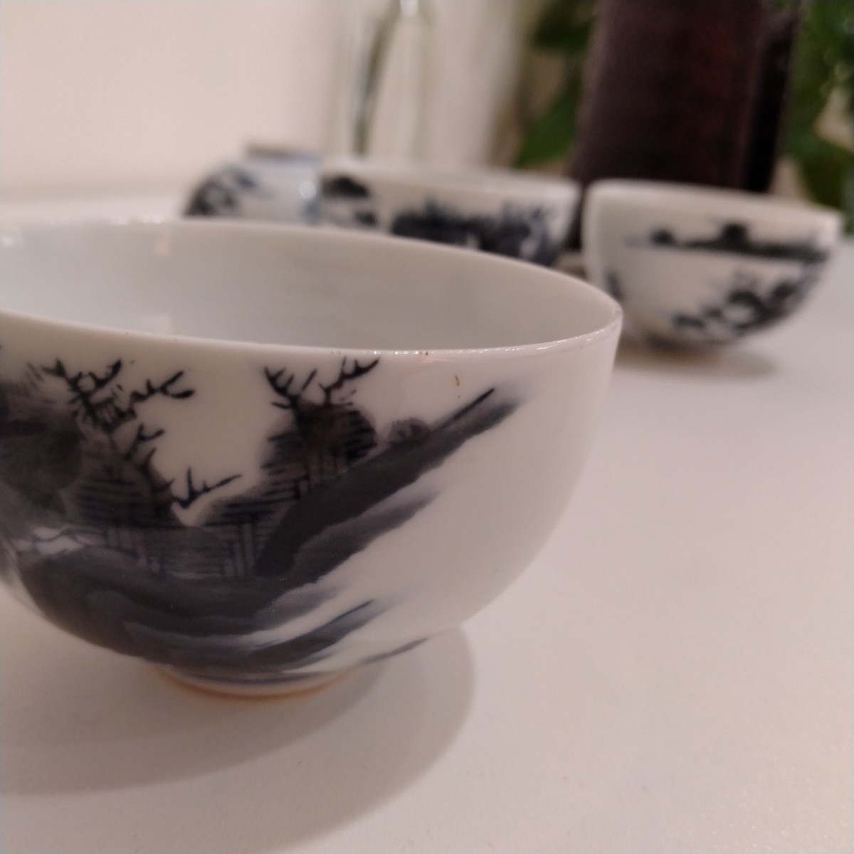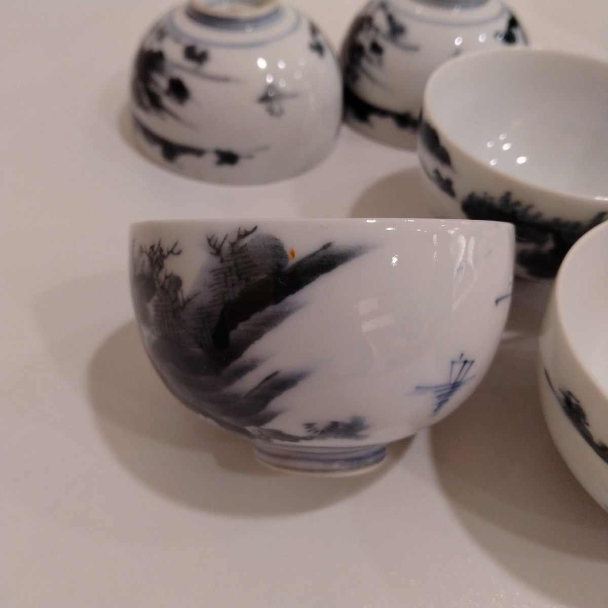 商品名 | 萬祥銘 染付 山水風景文 茶碗 5点 煎茶碗 茶器 茶道具 碗籠付き |