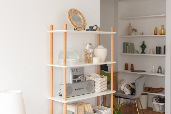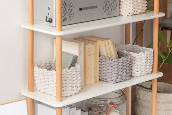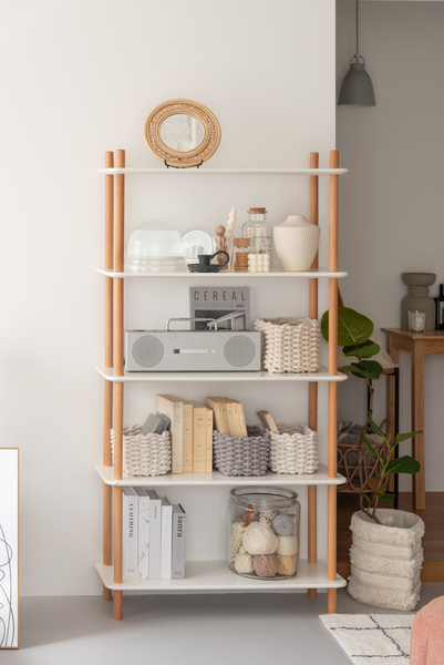 ホワイトの棚と天然木のナチュラルカラーな支柱が優しい印象を与えてくれる、3サイズのラックです。使う場所を選ばず様々な場所で活躍してくれるラックは、オープンタイプなので、壁面に設置するだけでなく空間の間仕切りとしても、抜け感を与えながら圧迫感無く使用する事が出来ます。 ねじ込み式で組立も簡単。お好みで高さを変えて使用する事も可能です。