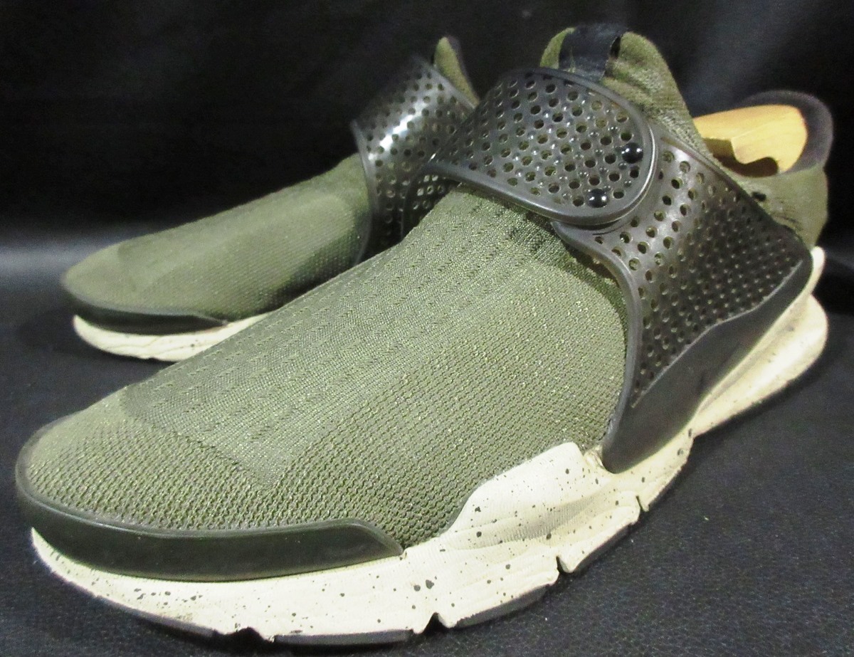 定価15120円 ナイキ NIKE ソックダート カーゴ カーキ 819686-300 SOCK DART CARGO KHAKI スニーカーになります。 もともとはHTMの企画として開発されたモデルで、開発段階で藤原ヒロシ氏がこのモデルを気に入り、10年の時経て2014年にFRAGMENT DESIGNとのコラボレーションモデルという形で発表し「SOCK DART」は人気モデルとなりました。 現在では当たり前になったニットアッパーを使用し、中央部には調節可能なシリコンストラップを配置し好みのフィット感に調節可能となります。 ソールにはフルレングスのファイロンとなります。 格安からの売り切りですので、宜しくお願い致します。 |