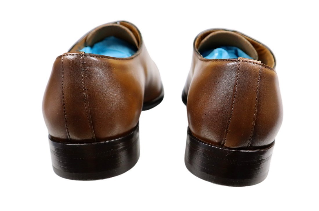 熟練した職人がハンドペイントによって重ね塗りした、ブラウンカラーが美しくリッチに仕上がっています。見るからに極上カーフレザーとわかる艶やかな質感も魅力で、トゥやヒールに近づくにつれ濃いめのカラーリングになっています。公式カラーは「T.MORO」。