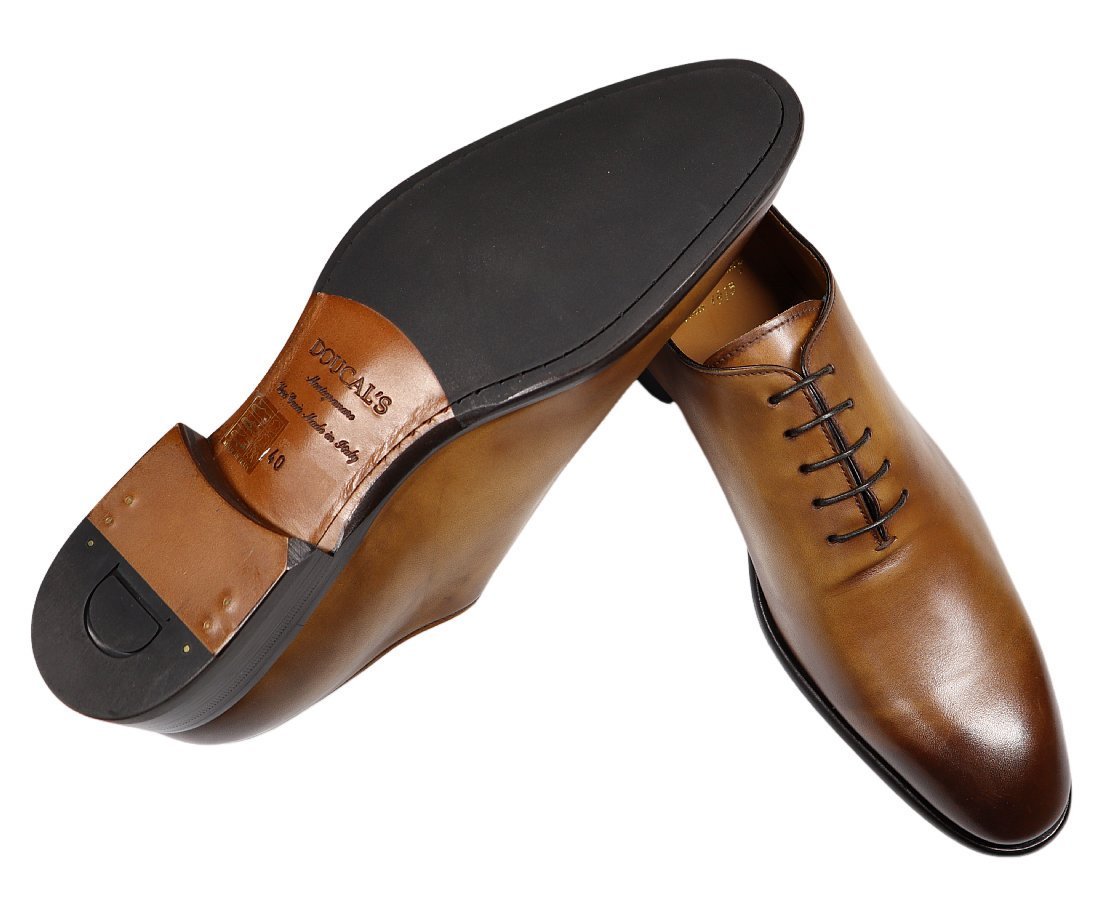 美しい細身ロングノーズとアンティークカラーのドレス革靴!【 DOUCAL'S / デュカルス (伊 】ブラウンのホールカットシューズ