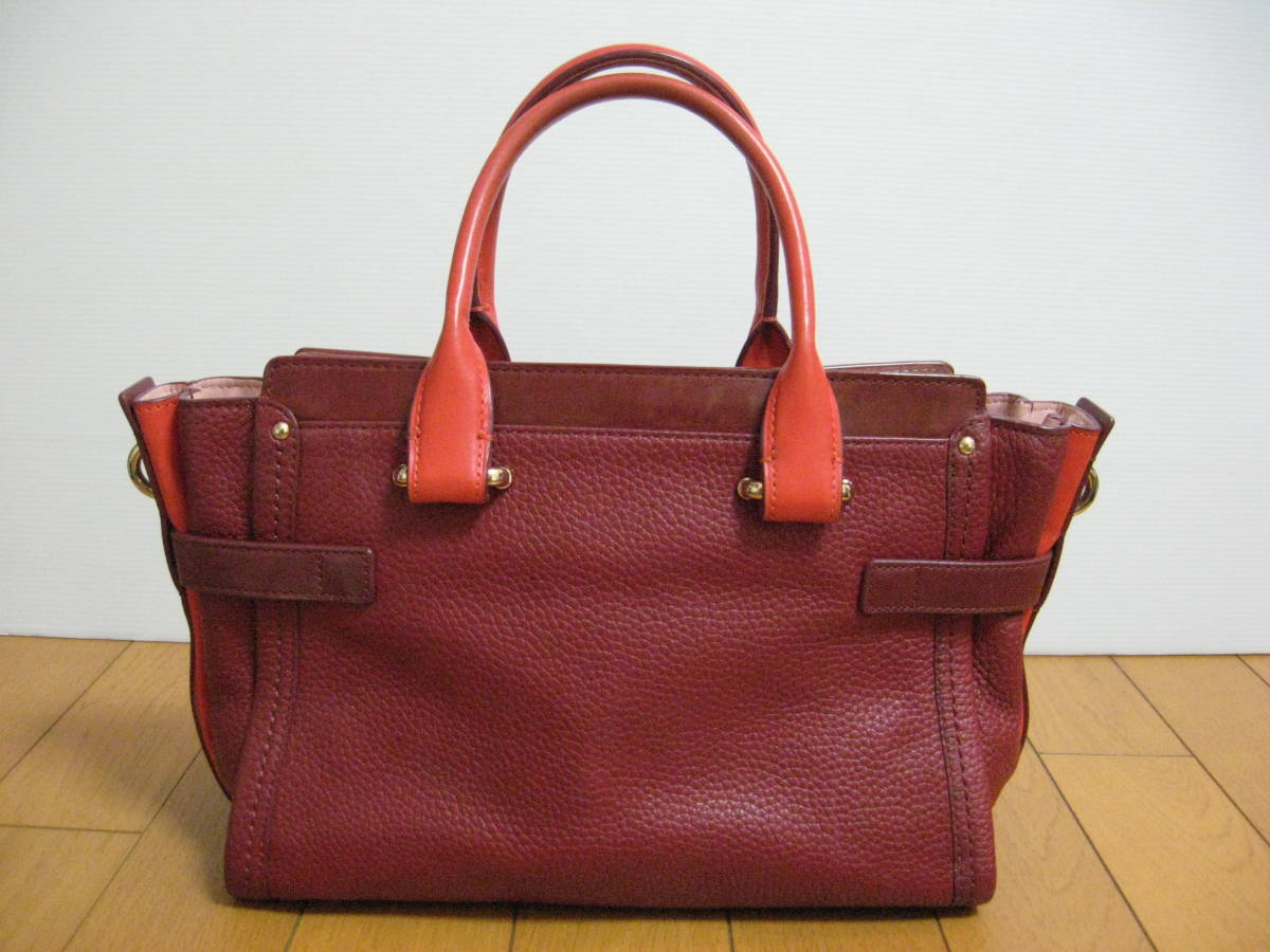稀少 即決 コーチ COACH スワッガー27 キャリーオール27 ハンドバッグ ワインレッド濃い赤xレッド赤 36153