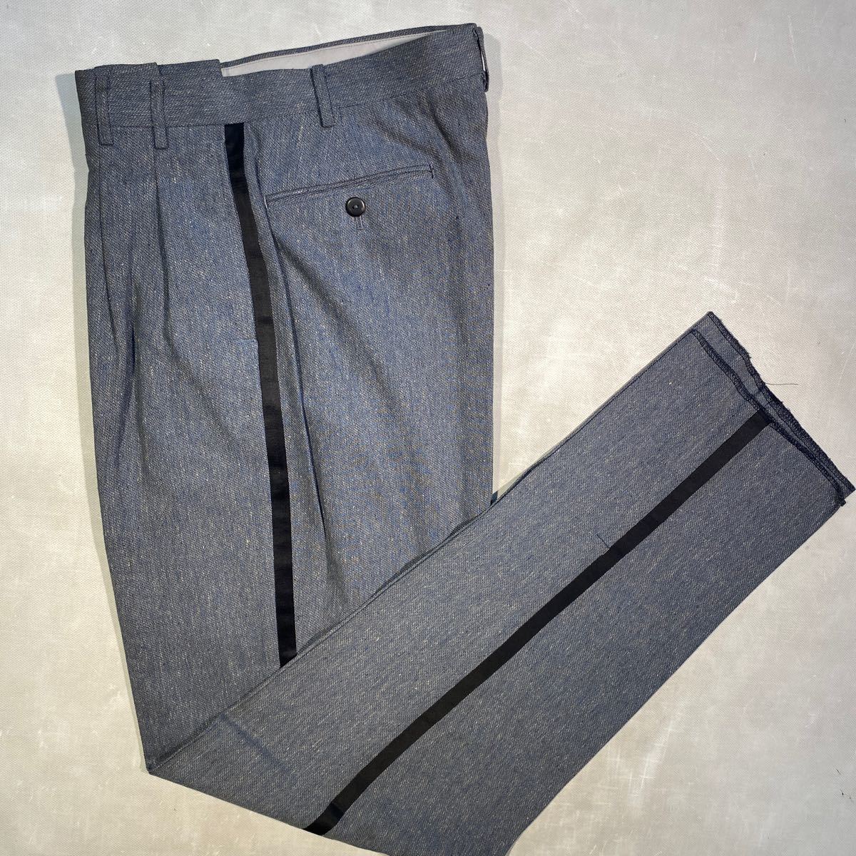 タキシードのパンツの側面に、1本のシルクのラインが入っています。