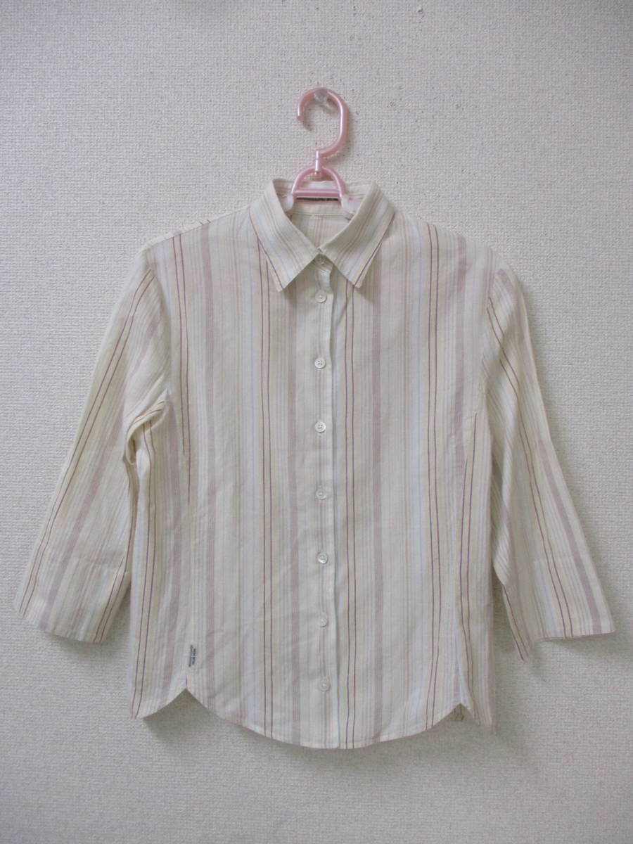 ☆商品名☆ マドモアゼル ノンノン  レディース シャツ・七分袖  クリーム・ベージュ系ストライプ  38Mサイズ