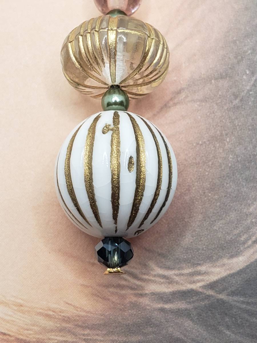 素材はメタリックビーズ、アンティーク風ビーズです。
