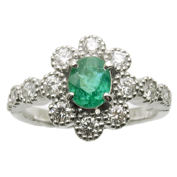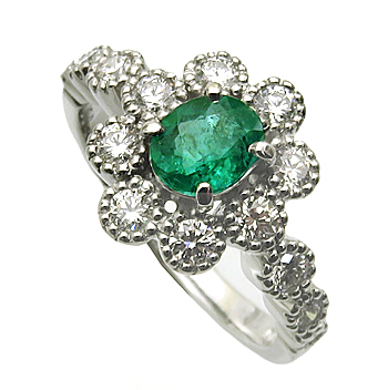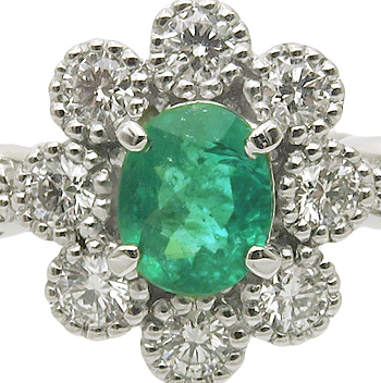 宝石詳細:0.50ct 5.6x4.5x2.8mm ビビットブルイッシュグリーン(日本色彩研究所) ミディアムインクルージョン/