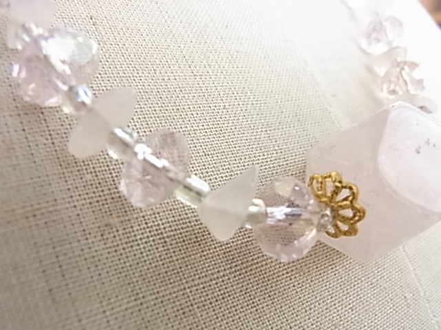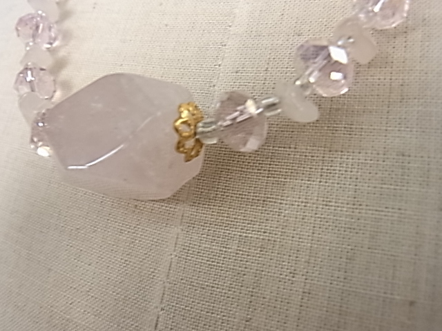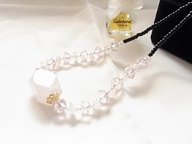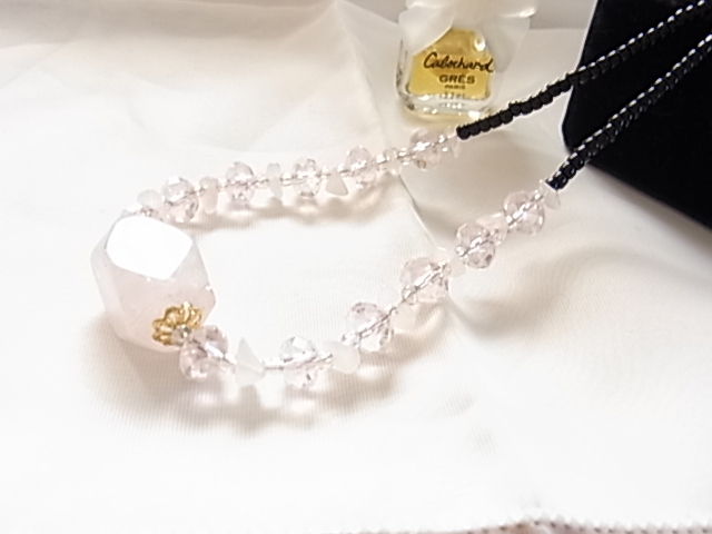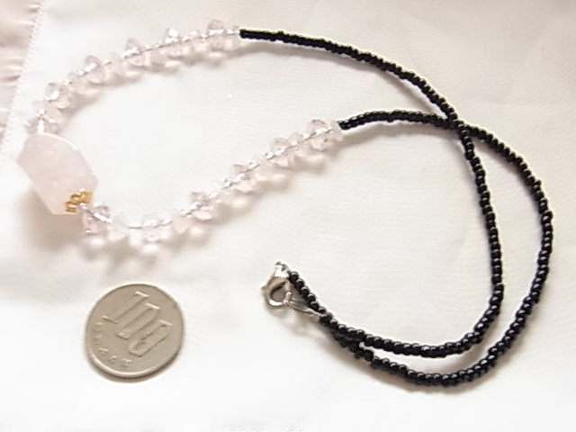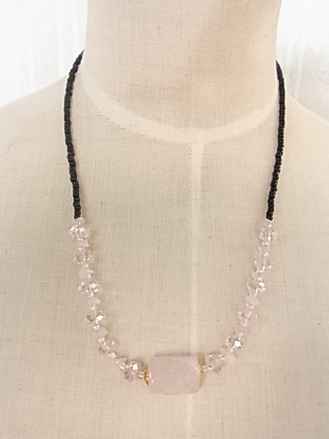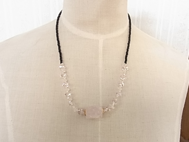 ローズクォーツと桃色の綺麗なガラスビーズと黒色のビーズストーン 黒と桃色ピンクが綺麗 配色が綺麗 素敵なネックレス★★
