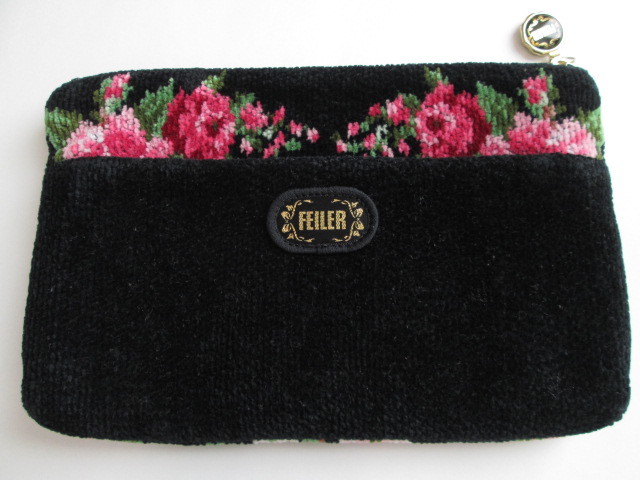 フェイラー 大きめ ポーチ 未使用 フルレット 黒 ブラック 通帳ケース お薬手帳 カードケース入れ FEILER feiler