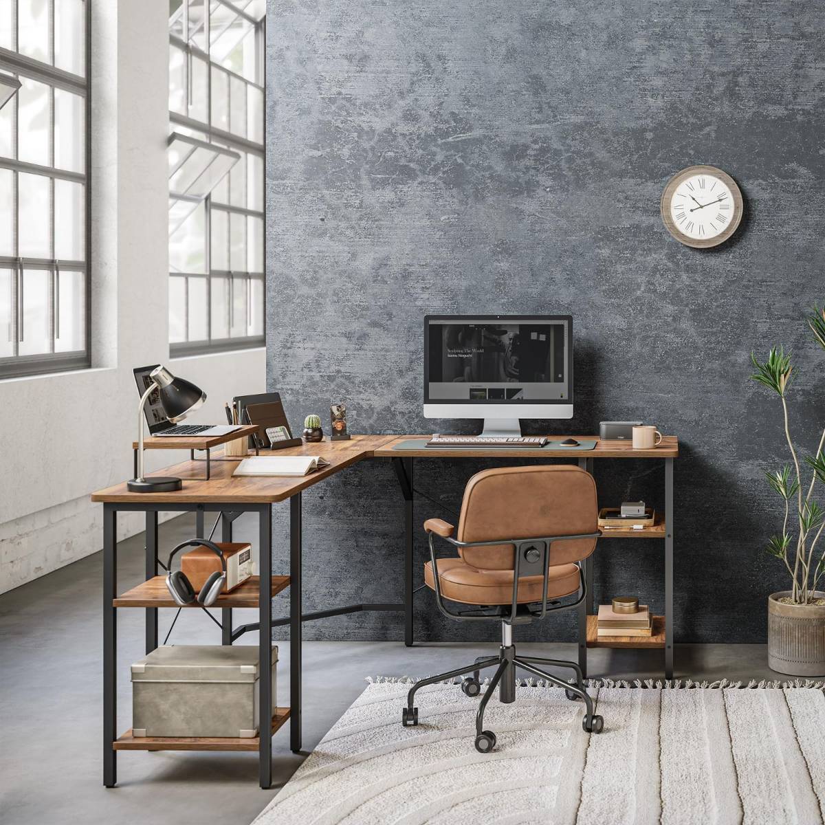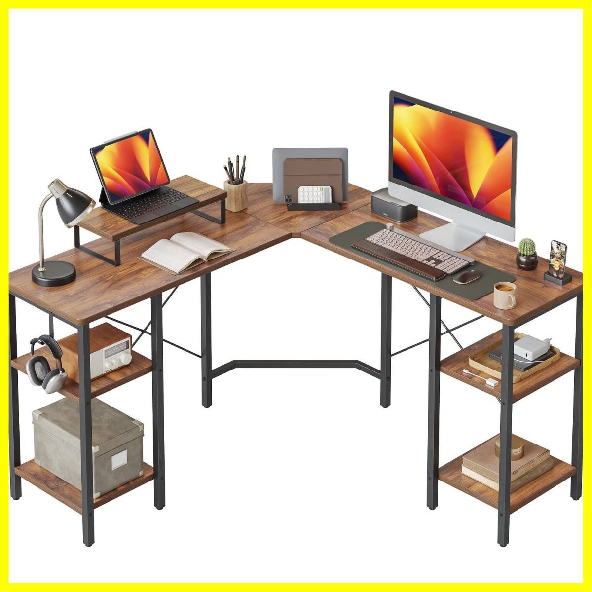 CubiCubi l字デスク ラック付きデスク モニター台付き ゲーミングデスク パソコンデスク 勉強机 一人暮らし 収納便利 幅128cm*奥行き128cm ブラウン