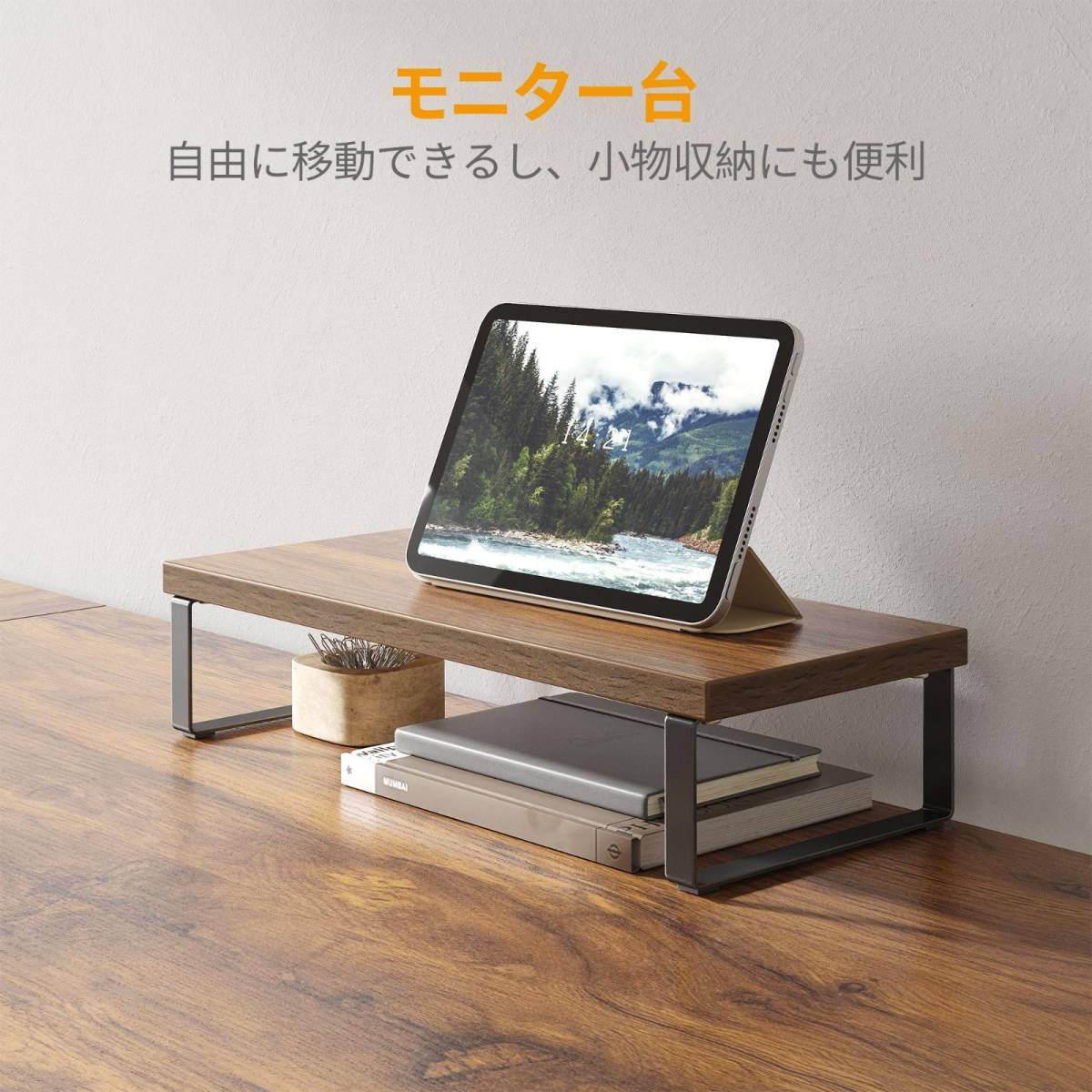 小物を収納できるし、モニターを目の高さまで上げられるので、首や背中の負担を軽減します。