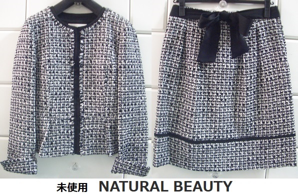 ☆☆☆ 未使用ナチュラルビューティー ツィードジャケット&スカートスーツ40黒×白 ☆☆☆
