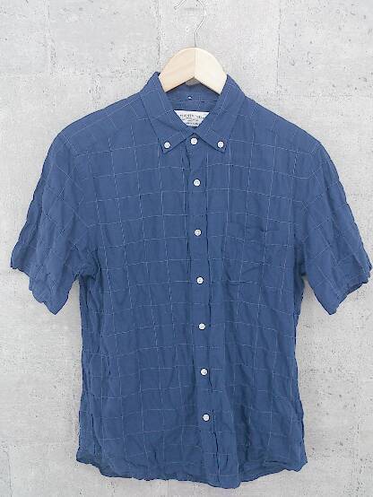 ◇ UNITED ARROWS green label relaxing チェック ボタンダウン BD  半袖 シャツ S ネイビー メンズ