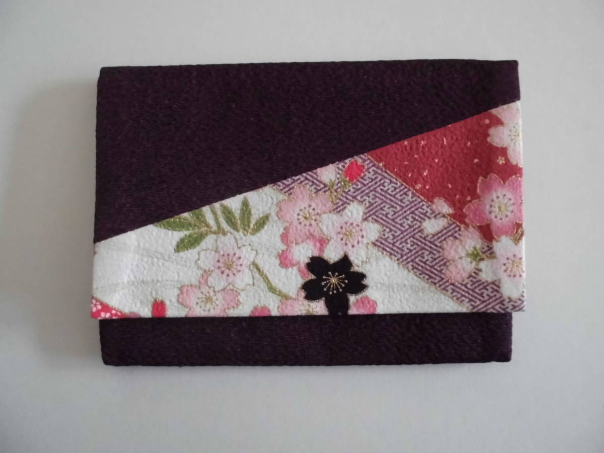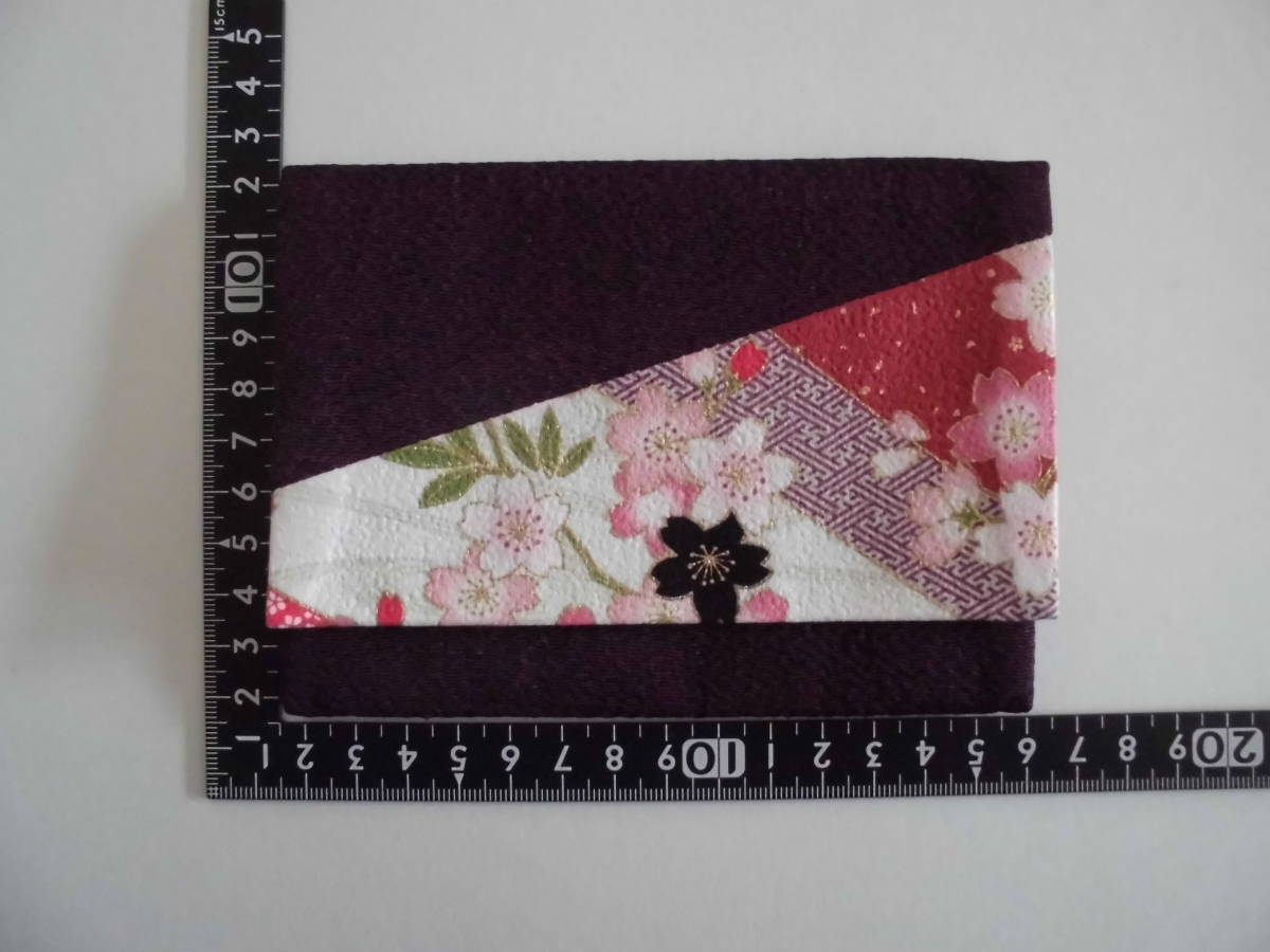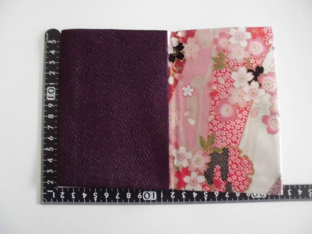 【念珠袋】 ハンドメイド品 ちりめん無地(ムラサキ)×綿(和柄エンボスプリント) 約15センチ×約11センチ お数珠入れ