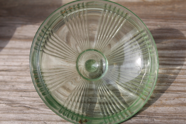 【古い 緑 プレスガラス 蓋付 鉢】1個