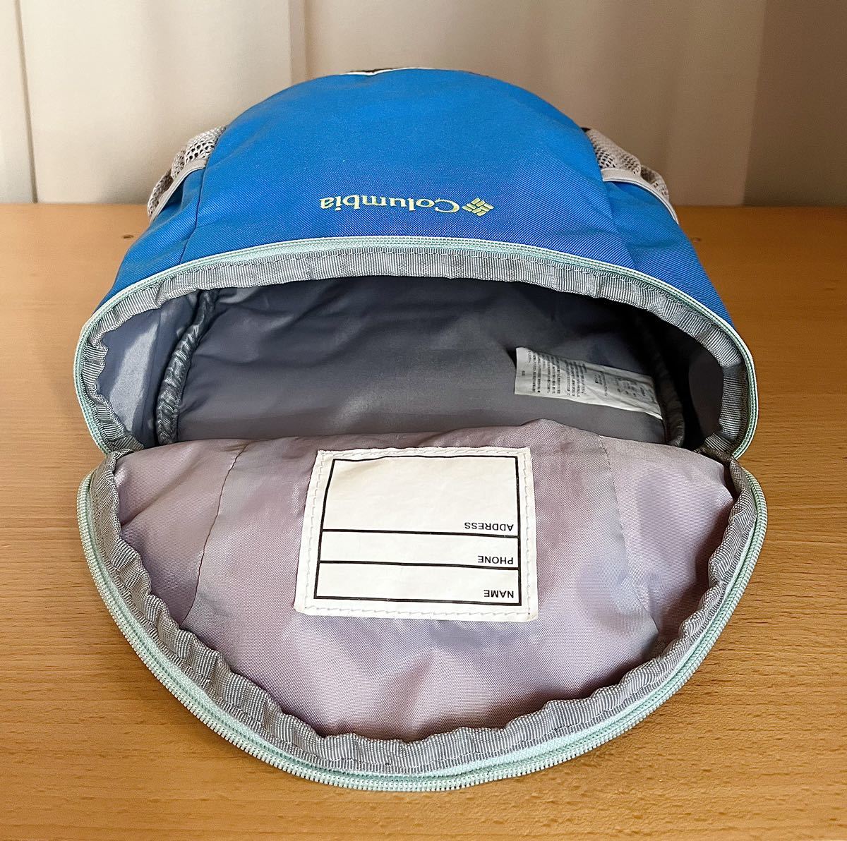 ・上蓋内側:ネームタグ(名前、電話番号、住所記入欄)あり