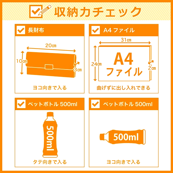 水筒やドリンクボトル、折り畳み傘やハンドタオルなどを収納可能