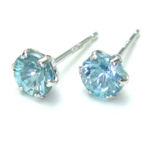 【希少石】K18 ブルージルコン 4mm ラウンド ピアス WG YG ジュエリー 天然石 12月誕生石 レアストーン ジルコン 選べるゴールド 箱付き