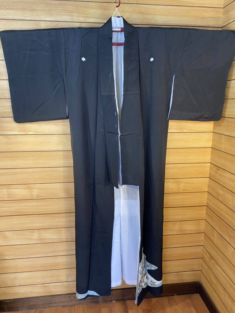 留袖 正絹 154cm 婚礼 着物 5つ紋 黒無地