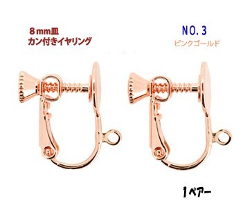 ●表示価格は1ペアー(2コ入り)のお値段です。●直径約8mmの皿とぶら下げるためのカンが付いたネジバネ式イヤリング金具です。●全長:約17×16mm(カンも含む)●素材:真鍮●メッキカラー:ピンクゴールド●2ペアー入りと超お得な10ペアー入りサービスパックもございます(別ページにて)